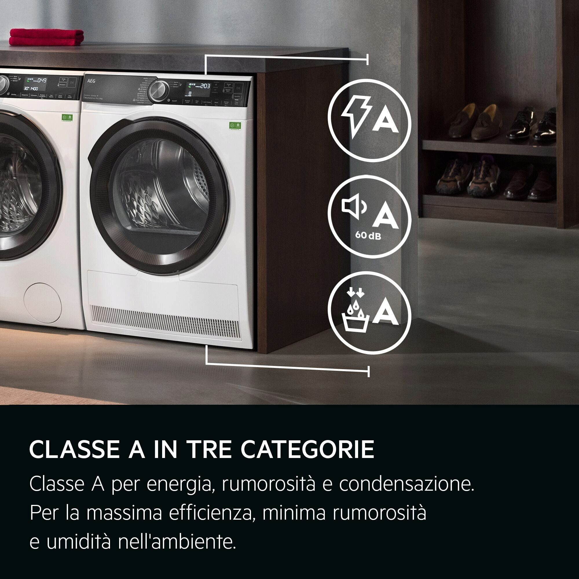 Le asciugatrici AEGcon la più alta classe di efficienza energetica ti permettono di risparmiare risorse eproteggere la longevità dei tuoi capi grazie alle nostre tecnologie innovative.