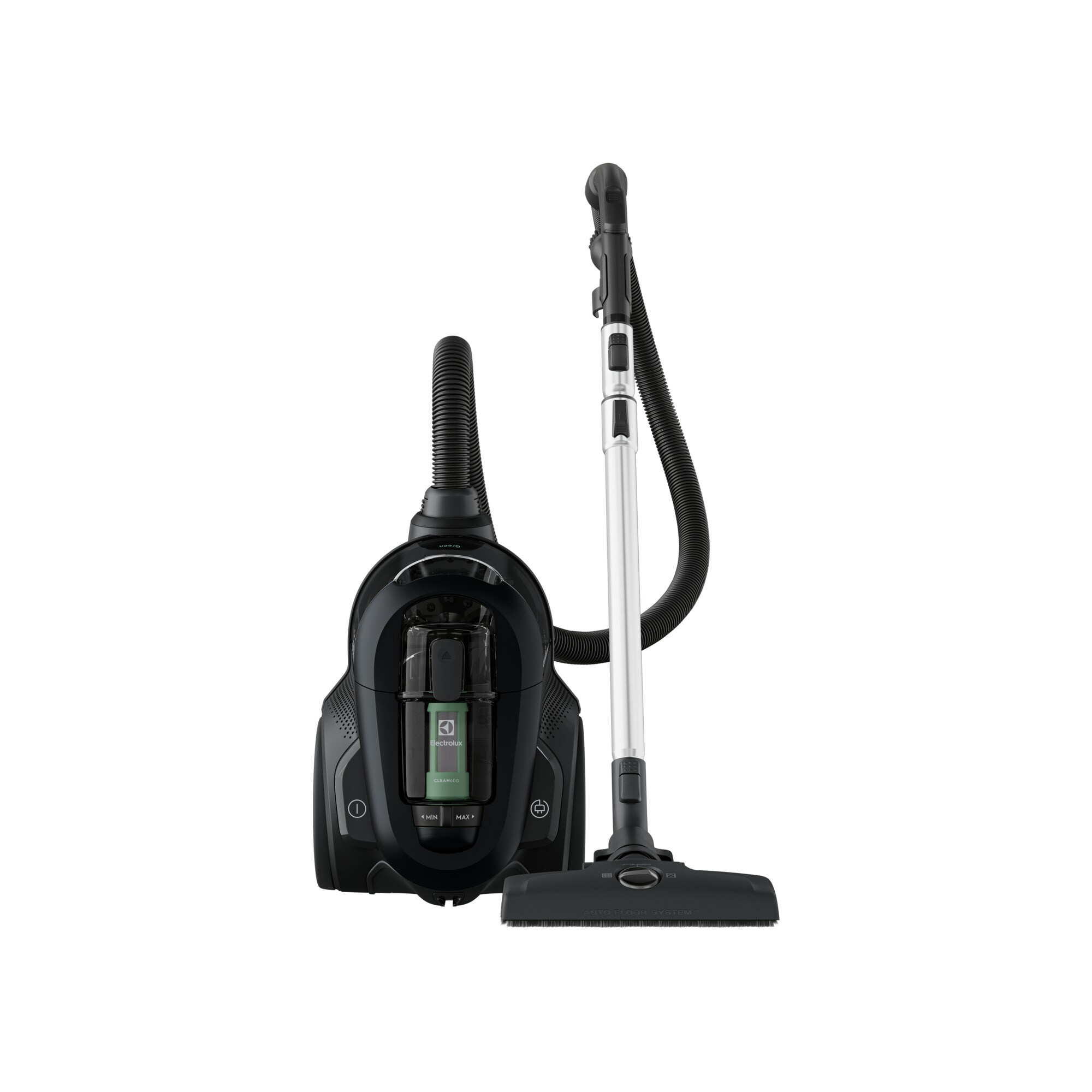 Electrolux EL61C2GRN Aspirapolvere senza sacco serie 600. Tipo di contenitore per cenere: Senza sacchetto, Colore del prodotto: Nero, Lunghezza cavo: 9 m. Tipo di pulizia: Secco, Raggio d’azione: 12 m, Aspirapolvere: 18 kPa. Potenza di aspirazione: 18000 AW, Massima potenza in entrata: 700 W, Tensione di ingresso AC: 230 V. Larghezza: 283 mm, Profondità: 422 mm, Altezza: 304 mm