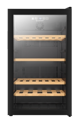 Climadiff CLS52B1. Posizionamento dell’apparecchio: Libera installazione, Colore struttura: Nero, Colore interno: Nero. Capacità bottiglie: 52 bottiglia/bottiglie, Tipo di prodotto: Cantinetta vino con compressore, Intervallo temperatura (zona 1): 5 – 20 °C. Colore dell’illuminazione interna: Bianco, Posizionamento del display: Interno. Classe efficienza energetica: G, Consumo energetico annuo: 142 kWh, Scala di efficienza energetica: Da A a G. Larghezza: 495 mm, Profondità: 561 mm, Altezza: 833 mm