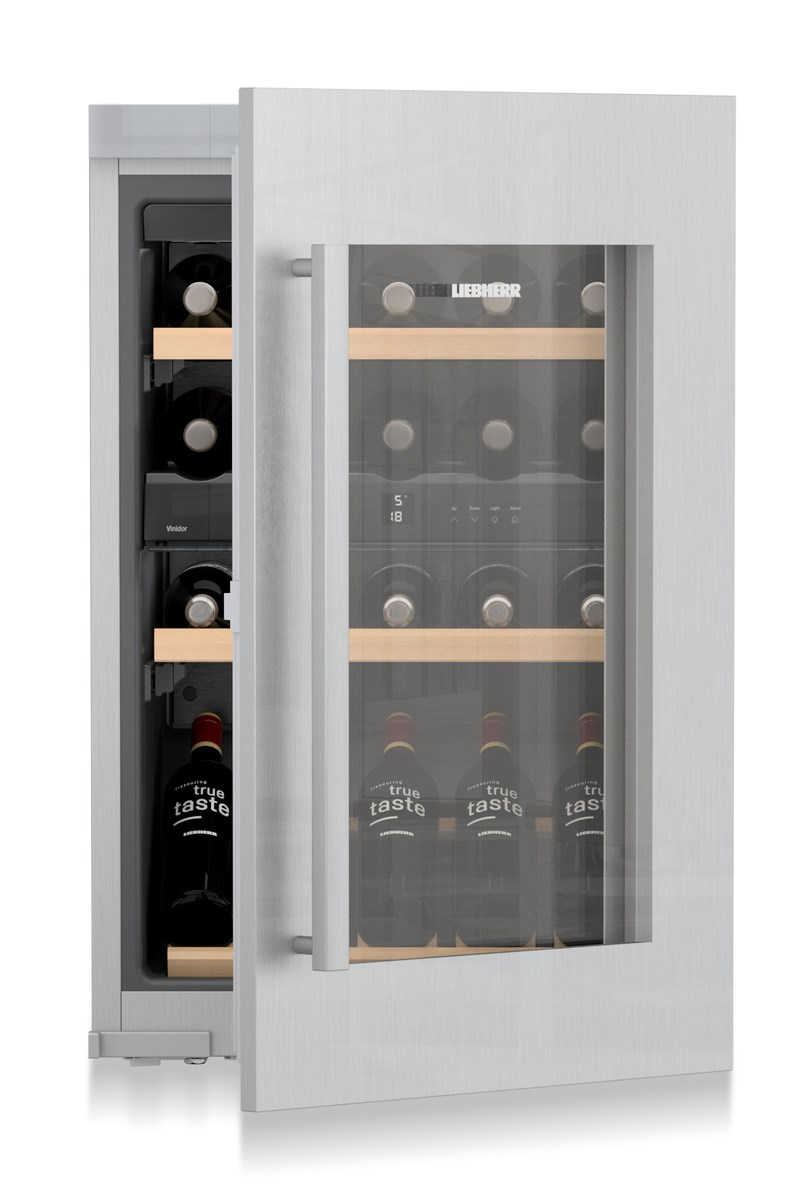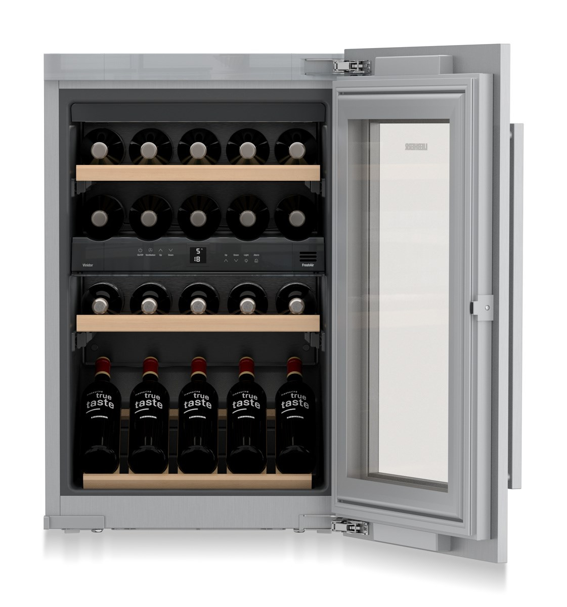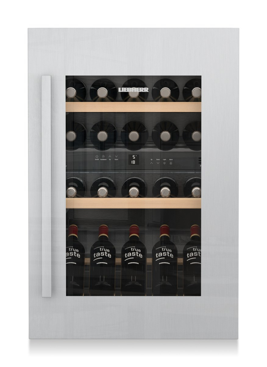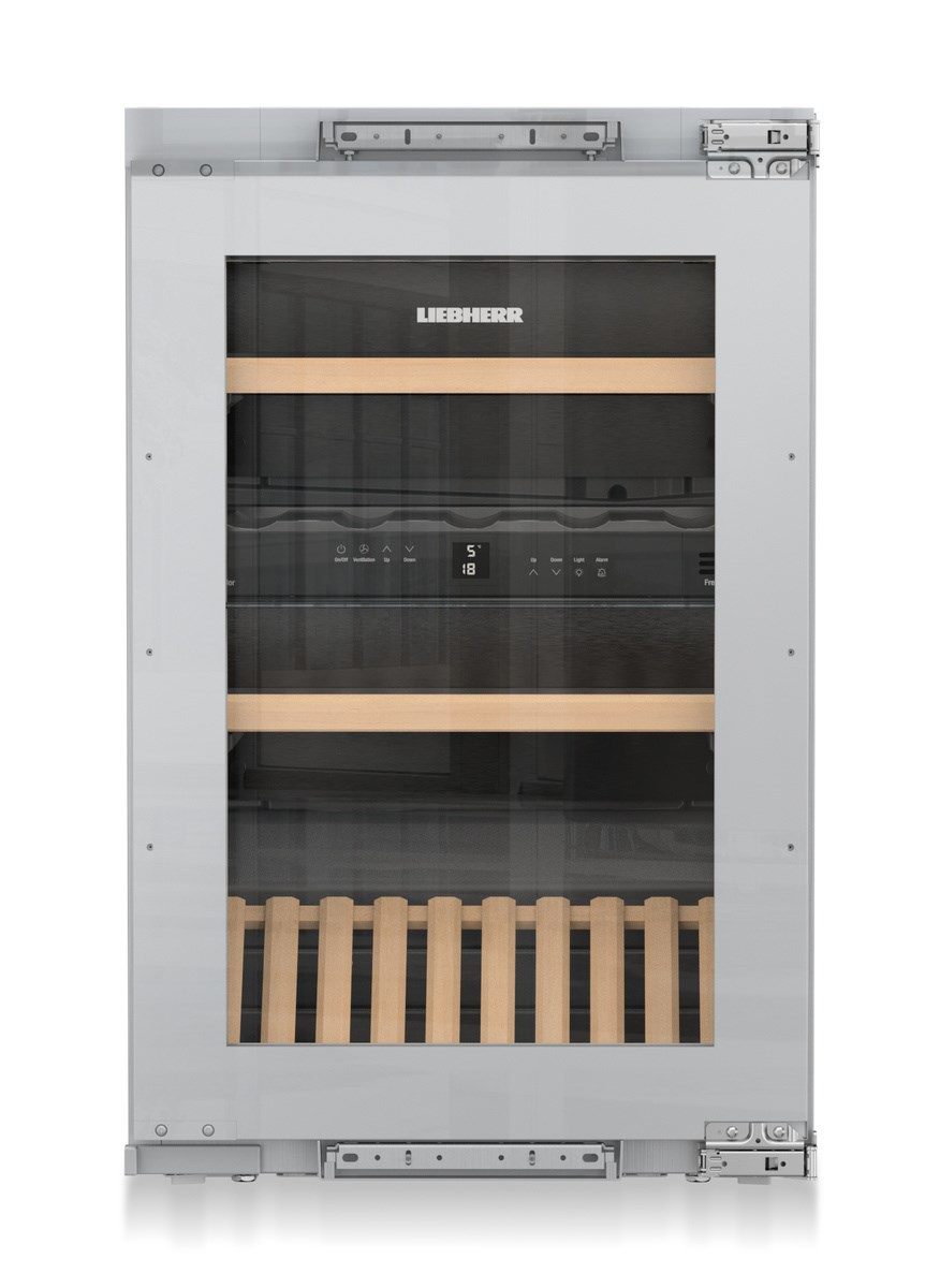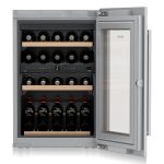 Liebherr EWTdf 1653. Posizionamento dell’apparecchio: Da incasso, Colore struttura: Grigio, Colore interno: Grigio. Capacità bottiglie: 30 bottiglia/bottiglie, Tipo di prodotto: Cantinetta vino con compressore, Classe climatica: SN-ST. Tipo di controllo: Touch, Tipo di display: LCD, Posizionamento del display: Interno. Classe efficienza energetica: G, Consumo energetico annuo: 142 kWh, Scala di efficienza energetica: Da A a G. Larghezza: 557 mm, Profondità: 553 mm, Altezza: 873 mm