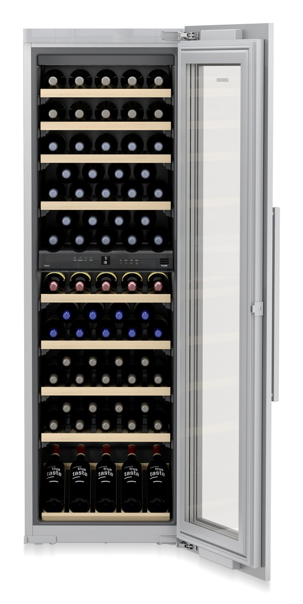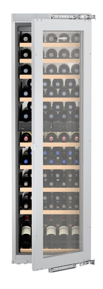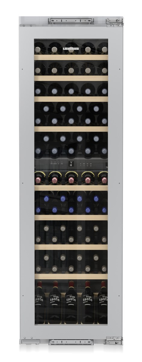 Liebherr EWTdf 3553 Vinidor. Posizionamento dell’apparecchio: Da incasso, Colore struttura: Grigio, Colore interno: Argento. Capacità bottiglie: 80 bottiglia/bottiglie, Tipo di prodotto: Cantinetta vino con compressore, Classe climatica: SN-ST. Tipo di controllo: Pulsanti, Tipo di display: LCD, Tipo di lampada: LED. Classe efficienza energetica: G, Consumo energetico annuo: 162 kWh, Scala di efficienza energetica: Da A a G. Larghezza: 557 mm, Profondità: 553 mm, Altezza: 1770 mm