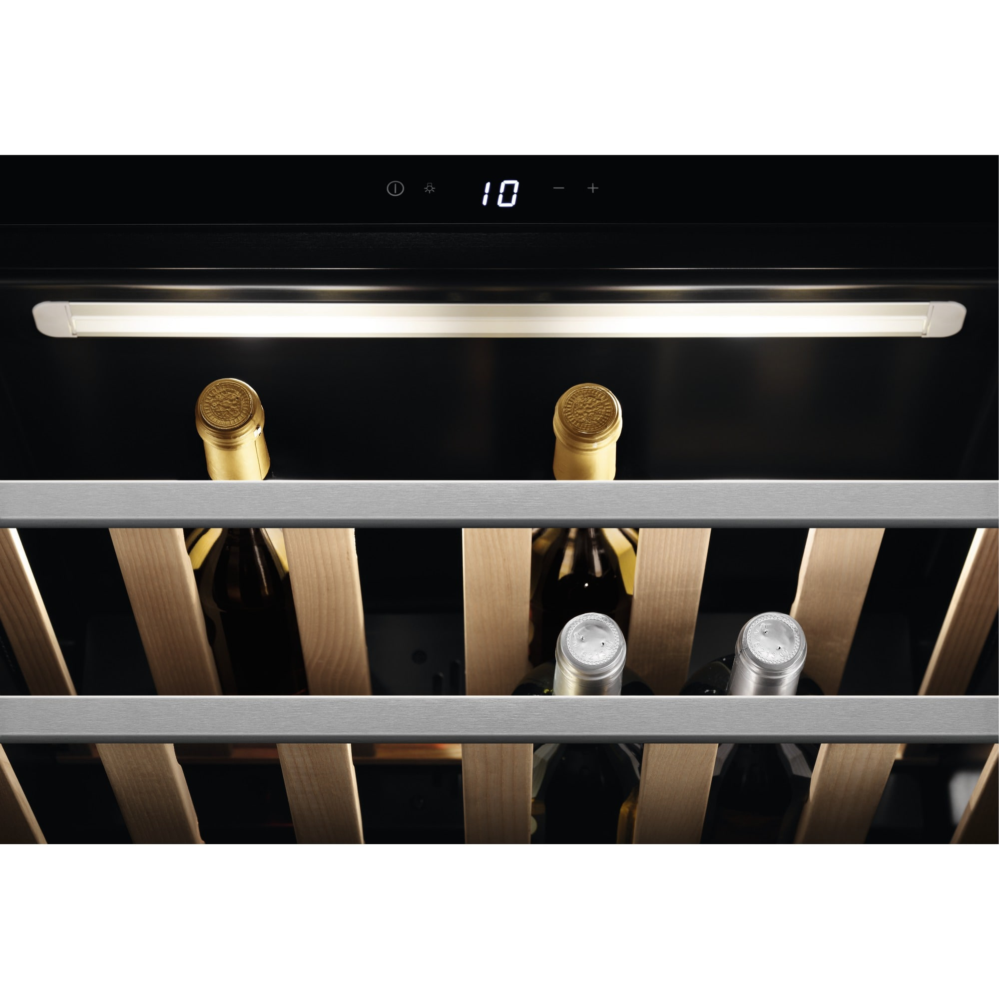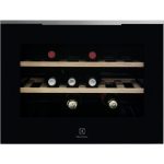 Electrolux KBW5X Cantinetta Vino ad incasso Serie 900. Posizionamento dell’apparecchio: Da incasso, Colore struttura: Nero, Colore interno: Nero. Capacità bottiglie: 18 bottiglia/bottiglie, Tipo di prodotto: Cantinetta vino con compressore, Classe climatica: N-ST. Tipo di controllo: Touch, Tipo di lampada: LED. Classe efficienza energetica: F, Consumo energetico annuo: 100 kWh, Scala di efficienza energetica: Da A a G. Larghezza: 596 mm, Profondità: 581 mm, Altezza: 456 mm