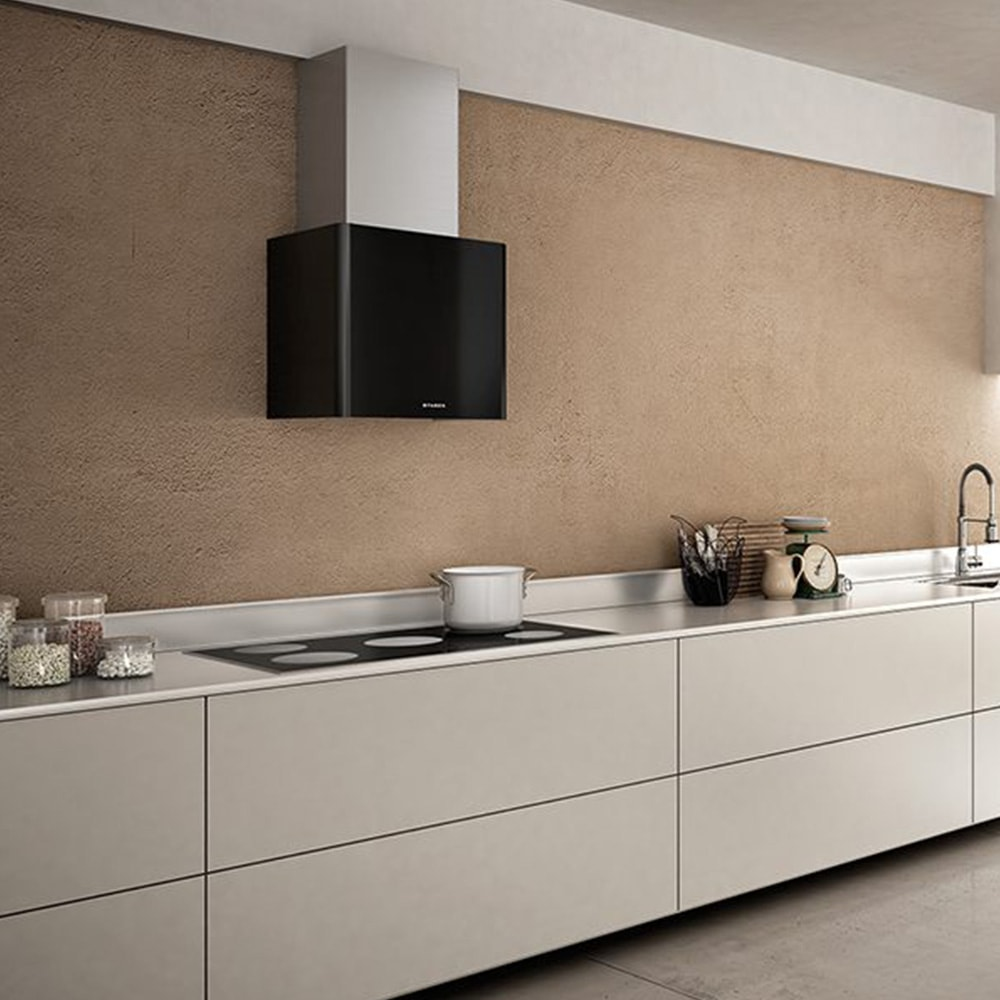 Né cappa cubica né cappa a ”T rovesciata”, Lithos è estremamente versatile a partire dalle dimensioni. Solo 45 cm di larghezza le permettono di adattarsi a ogni tipo di ambiente caratterizzandolo con colorazioni gloss decise e grintose: dal nero al bianco, fino alle più nuove tonalità bianco corian e giallo crema, in linea con l’estetica del momento. Caratterizzata inoltre dal contrasto con l’acciaio inox del camino, Lithos si distingue per l’accurata rifinitura degli angoli smussati, che le conferiscono una linea assolutamente morbida e armoniosa.
