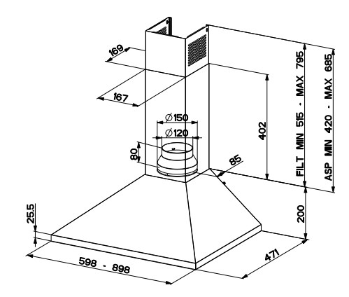 | Tipo | Cappa aspirante a parete |