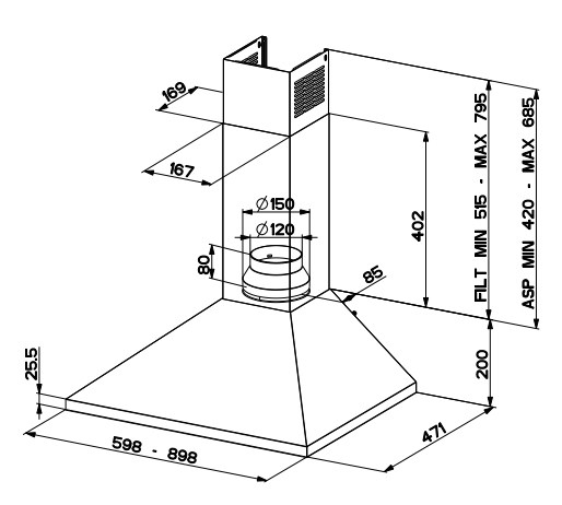| Tipo | Cappa aspirante a parete |