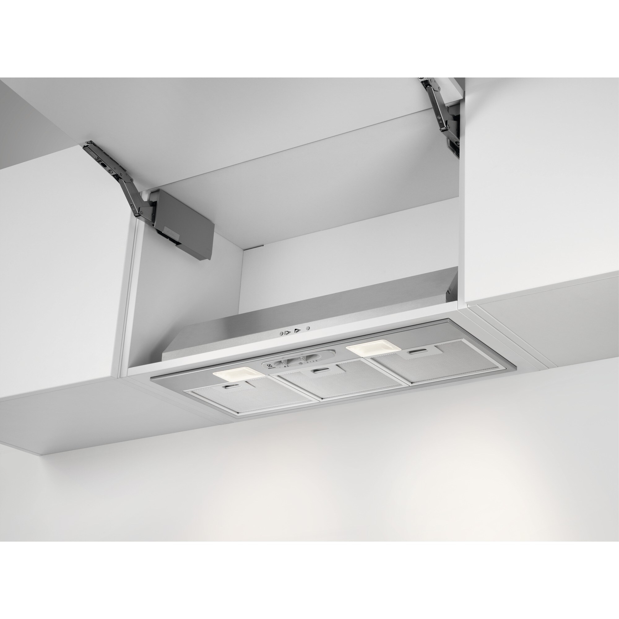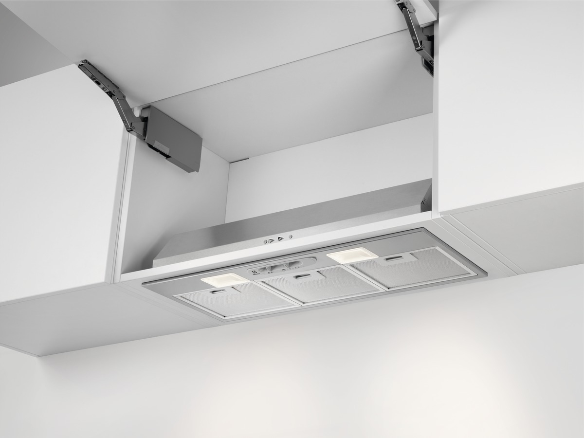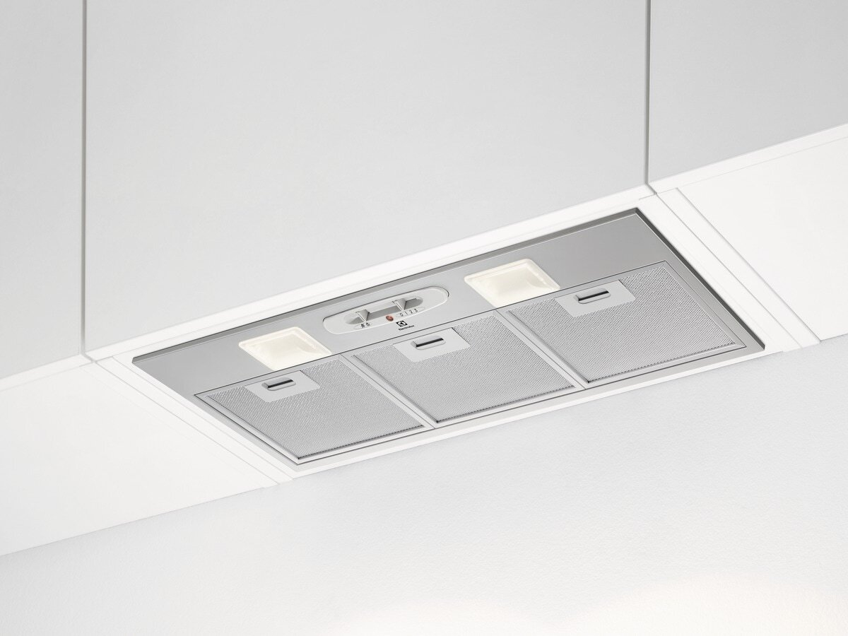 Electrolux LFG337S Cappa serie 300 LedLights 70 cm. Potenza massima di estrazione: 400 m³/h, Classe di efficienza dinamica del fluido: D, Classe di efficienza luminosa: E. Tipo: Integrato, Colore del prodotto: Grigio, Tipo di controllo: Tiro a effetto. Tipo di filtro antigrasso: Metallo, Numero di filtri: 2 pz. Potenza lampadina: 8 W, Numero di lampadine: 2 lampadina(e), Temperatura colore: 3000 K. Classe efficienza energetica: C, Consumo energetico annuo: 56,4 kWh, Potenza motore: 100 W