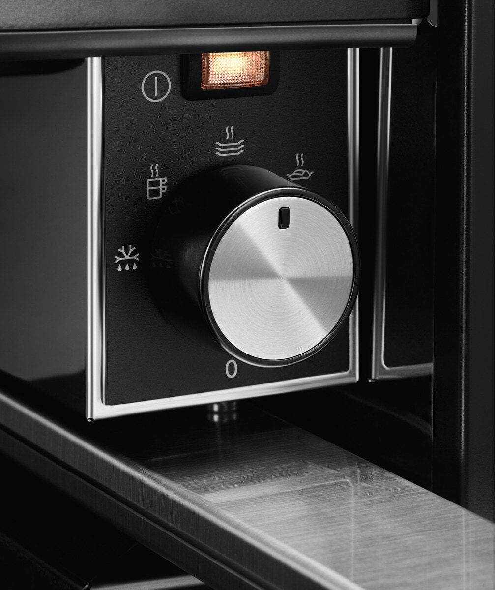 Un sistema di cassetto scaldavivande che mantiene i piatti caldi e li scalda. Un complemento perfetto per il forno. Integrazione del design con altri elettrodomestici.
