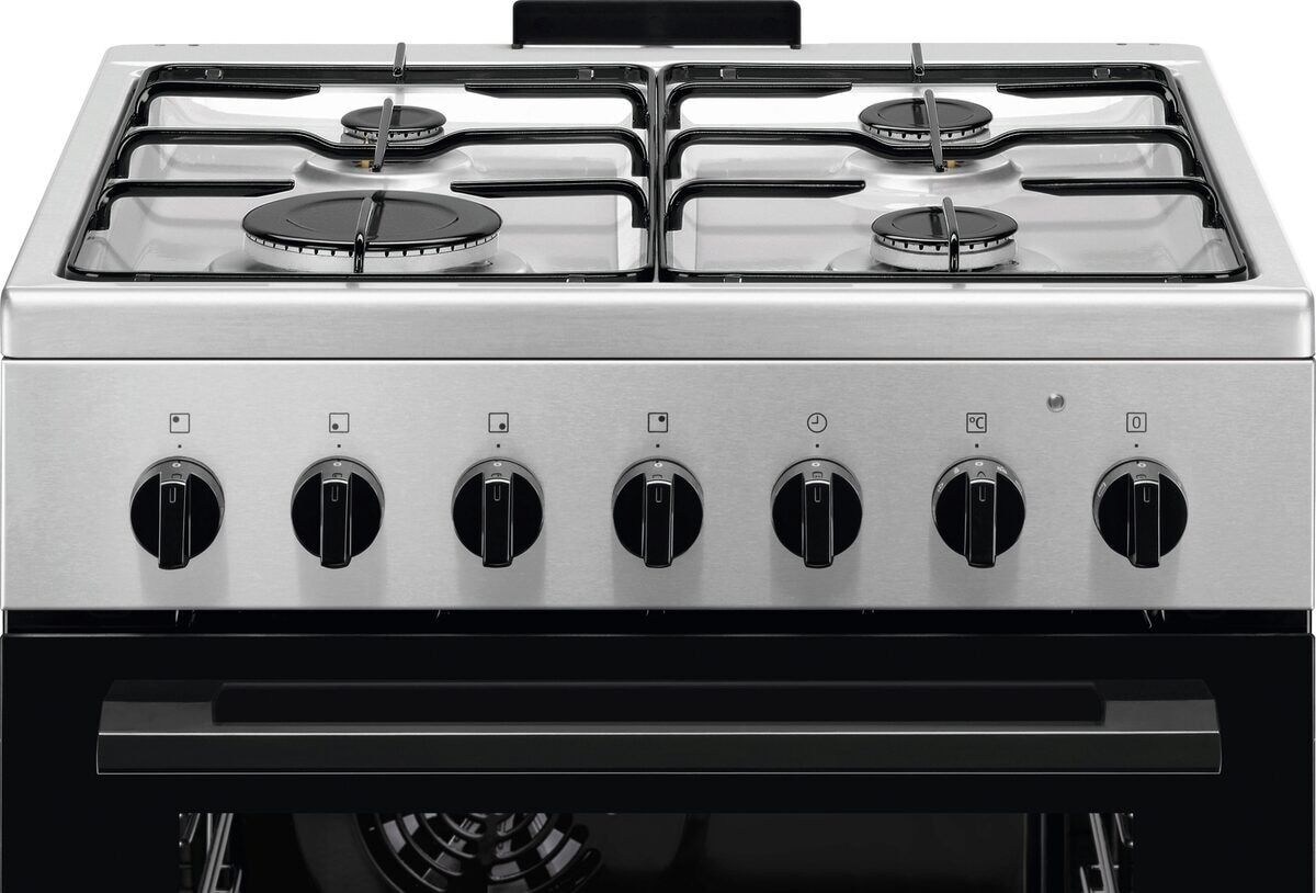 Electrolux CUCINE 60 x 60 MULTI CLASSE A LKK620010X MADE IN EUROPE. Tipo di prodotto: Cucina, Colore del prodotto: Acciaio inox, Tipo di controllo: Manopola. Tipo di piano cottura: Gas, Numero totale di fuochi: 4 Fornello(i), Numero di fuochi: 4 Fornello(i). Dimensione del forno: Media, Sorgente di alimentazione del forno: Elettrico, Capacità netta del forno: 57 L. Classe efficienza energetica: A, Consumo energetico (convenzionale): 0,84 kWh, Consumo energetico (convezione forzata): 0,75 kWh. Larghezza: 600 mm, Profondità: 600 mm, Altezza: 889 mm