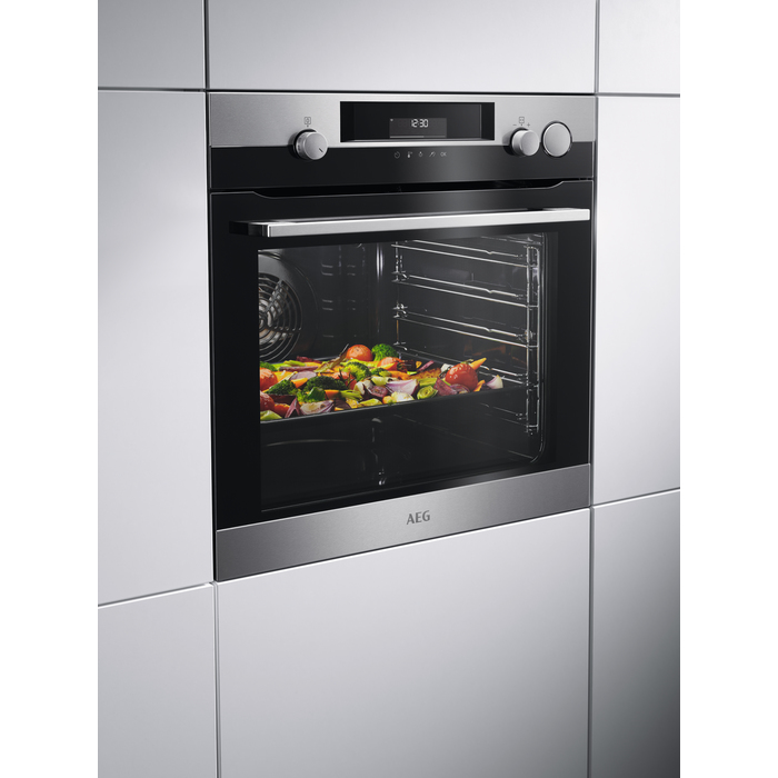 AEG Series 7000 BSK572360M. Dimensione del forno: Media, Tipo di forno: Forno elettrico, Capacità interna forno totale: 72 L. Posizionamento dell’apparecchio: Da incasso, Colore del prodotto: Nero, Acciaio inox, Tipo di controllo: Manopola, Touch. Classe efficienza energetica: A+, Consumo energetico (convenzionale): 0,93 kWh, Consumo energetico (convezione forzata): 0,69 kWh. Larghezza: 600 mm, Profondità: 600 mm, Peso: 33,9 kg