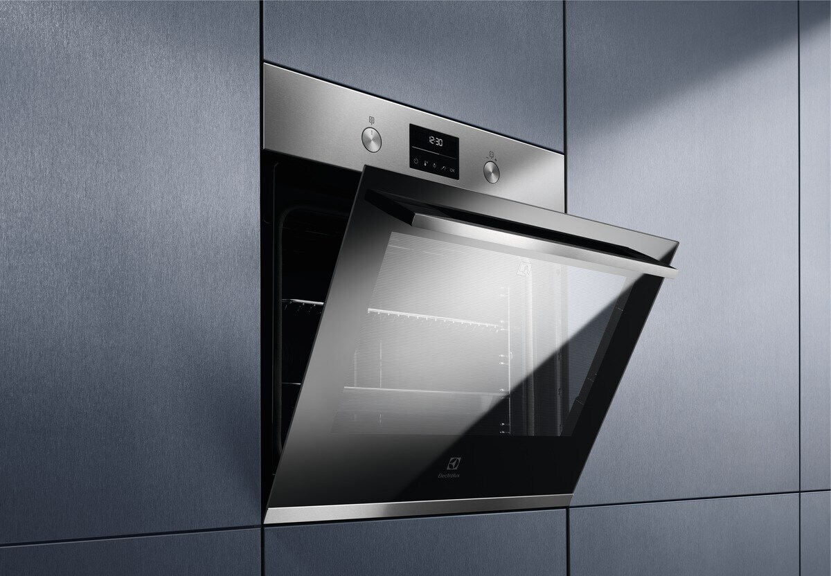 Electrolux KOHFP46BX Forno Multifunzione Serie 300. Dimensione del forno: Media, Tipo di forno: Forno elettrico, Capacità interna forno totale: 65 L. Posizionamento dell’apparecchio: Da incasso, Colore del prodotto: Acciaio inox, Tipo di controllo: Touch. Tipo di timer: Digitale. Classe efficienza energetica: A+, Consumo energetico (convenzionale): 0,94 kWh, Consumo energetico (convezione forzata): 0,67 kWh. Quantità lampade: 1 lampada(e), Tipo di lampada: Alogena, posizione delle illuminazioni: Posteriore