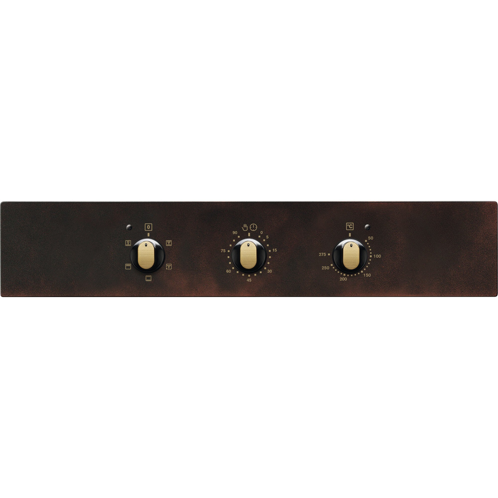 Electrolux FR53R Forno Multifunzione Serie 300. Dimensione del forno: Media, Tipo di forno: Forno elettrico, Capacità interna forno totale: 68 L. Posizionamento dell’apparecchio: Da incasso, Colore del prodotto: Rame, Tipo di controllo: Manopola. Tipo di timer: Meccanico, Modalità di impostazione del timer: Timer. Classe efficienza energetica: A, Consumo energetico (convenzionale): 0,89 kWh, Consumo energetico (convezione forzata): 0,8 kWh. Quantità lampade: 1 lampada(e), Tipo di lampada: Alogena, posizione delle illuminazioni: Lato, Posteriore