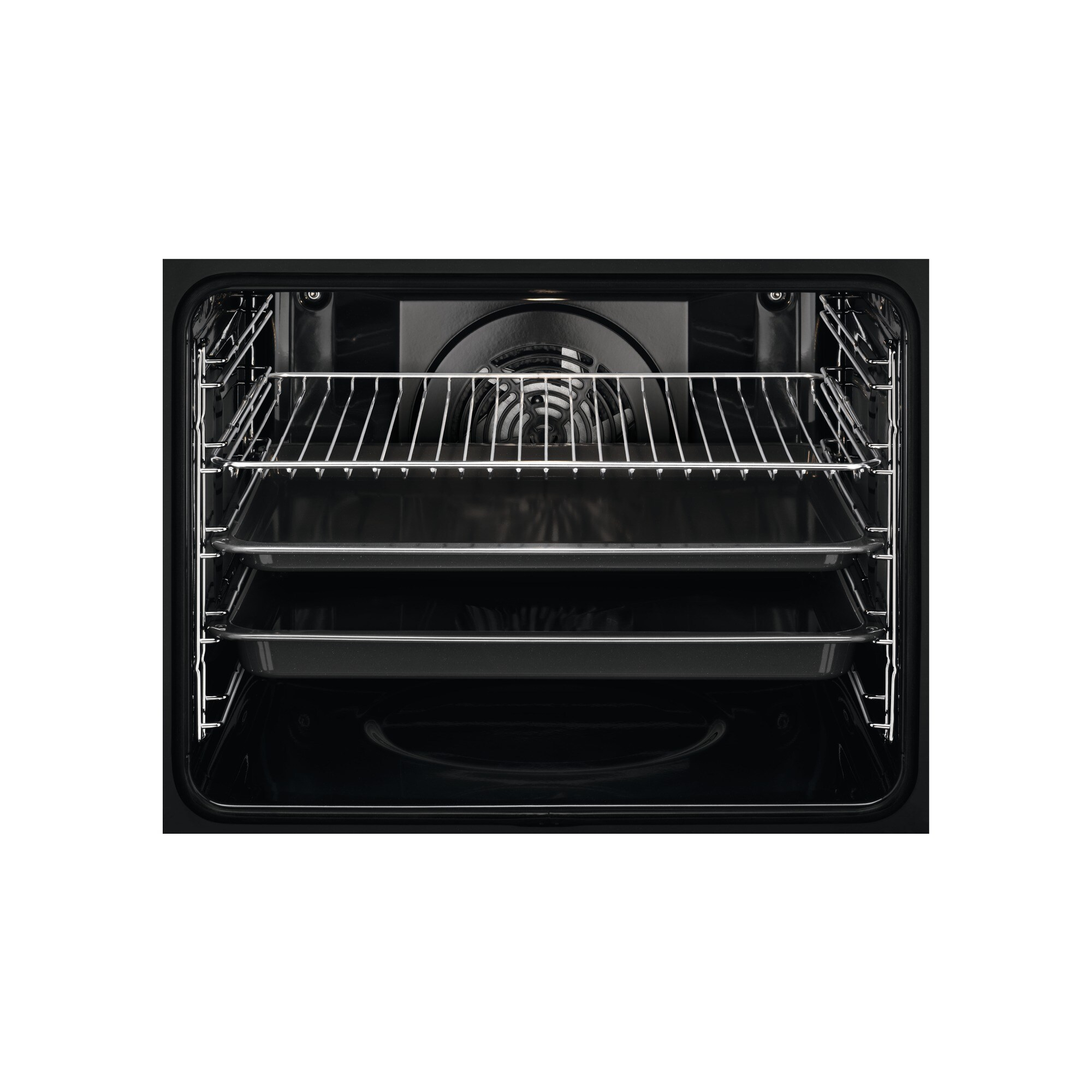 Electrolux KODFP46TX Forno Multifunzione Surround con Vapore SteamBake 500 con pulizia pirolitica. Dimensione del forno: Media, Tipo di forno: Forno elettrico, Capacità interna forno totale: 72 L. Posizionamento dell’apparecchio: Da incasso, Colore del prodotto: Acciaio inox, Tipo di controllo: Touch. Classe efficienza energetica: A+, Consumo energetico (convenzionale): 0,93 kWh, Consumo energetico (convezione forzata): 0,69 kWh. Quantità lampade: 1 lampada(e), Tipo di lampada: Alogena, posizione delle illuminazioni: Lato, Posteriore. Larghezza del compartimento: 56 cm, Profondità del compartimento: 55 cm, Altezza del compartimento: 59 cm