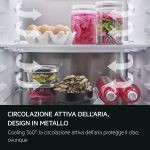 Il frigocongelatore Cooling 360° serie 8000 è dotato di più canali d’aria per garantire un raffreddamento costante. In questo modo si proteggono gli alimenti su ogni ripiano e si riduce lo spreco di cibo del 28%[1]. L’acciaio inox dona alla cucina un aspetto elegante e raffinato.