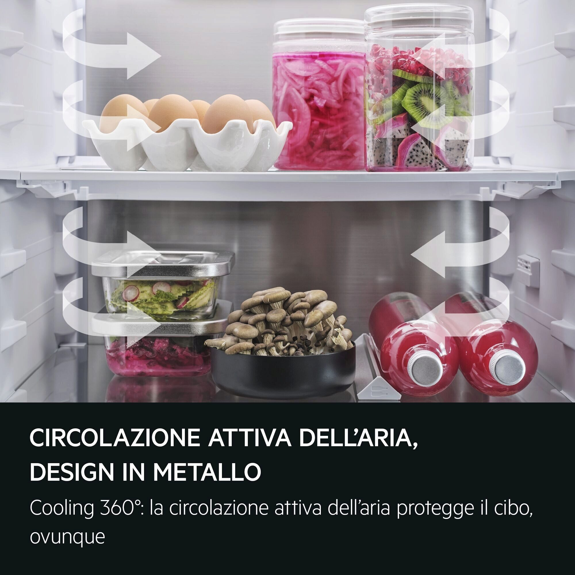 | Tecnologie AEG (conservazione degli alimenti) | Cooling 360°, CustomFlex®, TwinTech® No Frost, No Frost, Congelatore No Frost, ExtraChill drawer |
