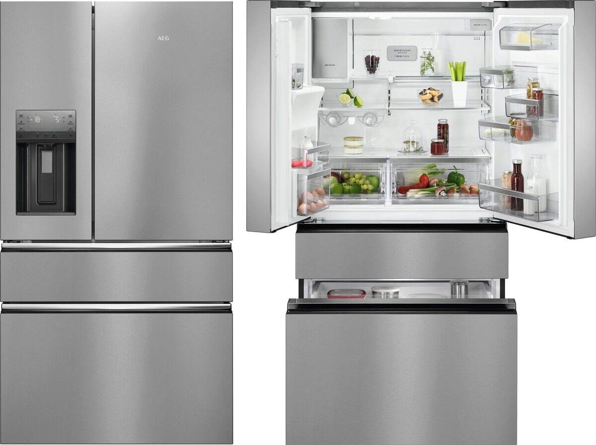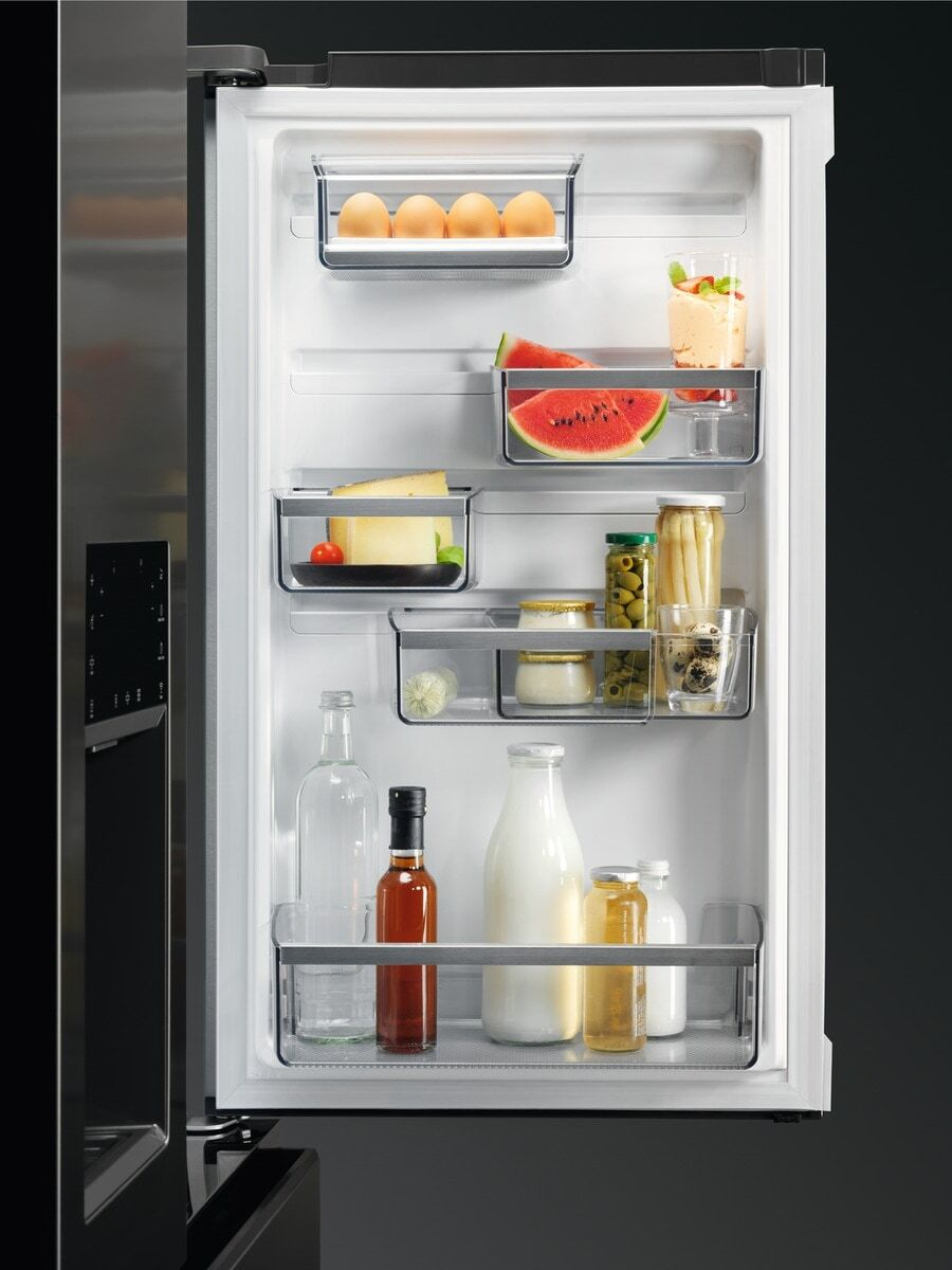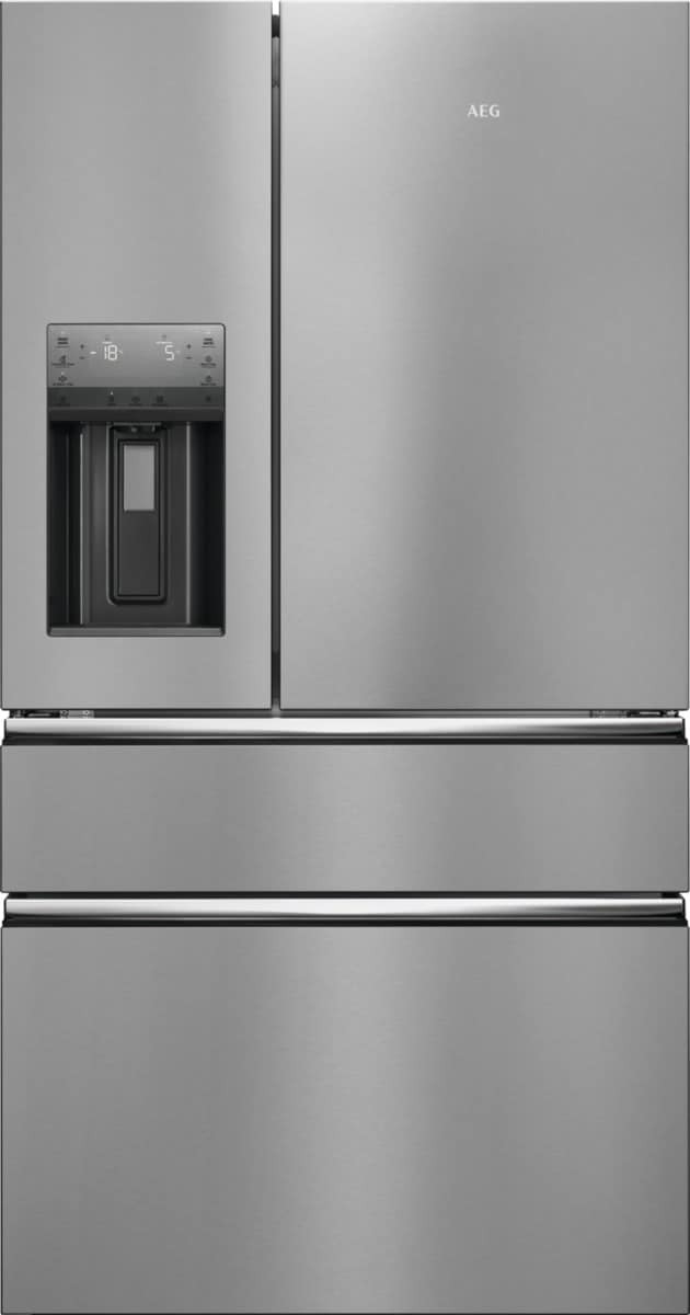 AEG RMB954E9VX Frigocongelatore Serie 9000 MultiSwitch 178.1 cm. Posizionamento dell’apparecchio: Libera installazione, Design del prodotto: Porta francese, Colore del prodotto: Argento, Acciaio inox. Capacità netta totale: 617 L, Classe climatica: SN-ST, Classe emissione rumore: C. Capacità netta frigorifero: 378 L, Tipo di lampada: LED. Capacità netta congelatore: 239 L, Posizione del congelatore: Posto in basso, Capacità di congelamento: 4,2 kg/24h. Lunghezza cavo: 2,5 m