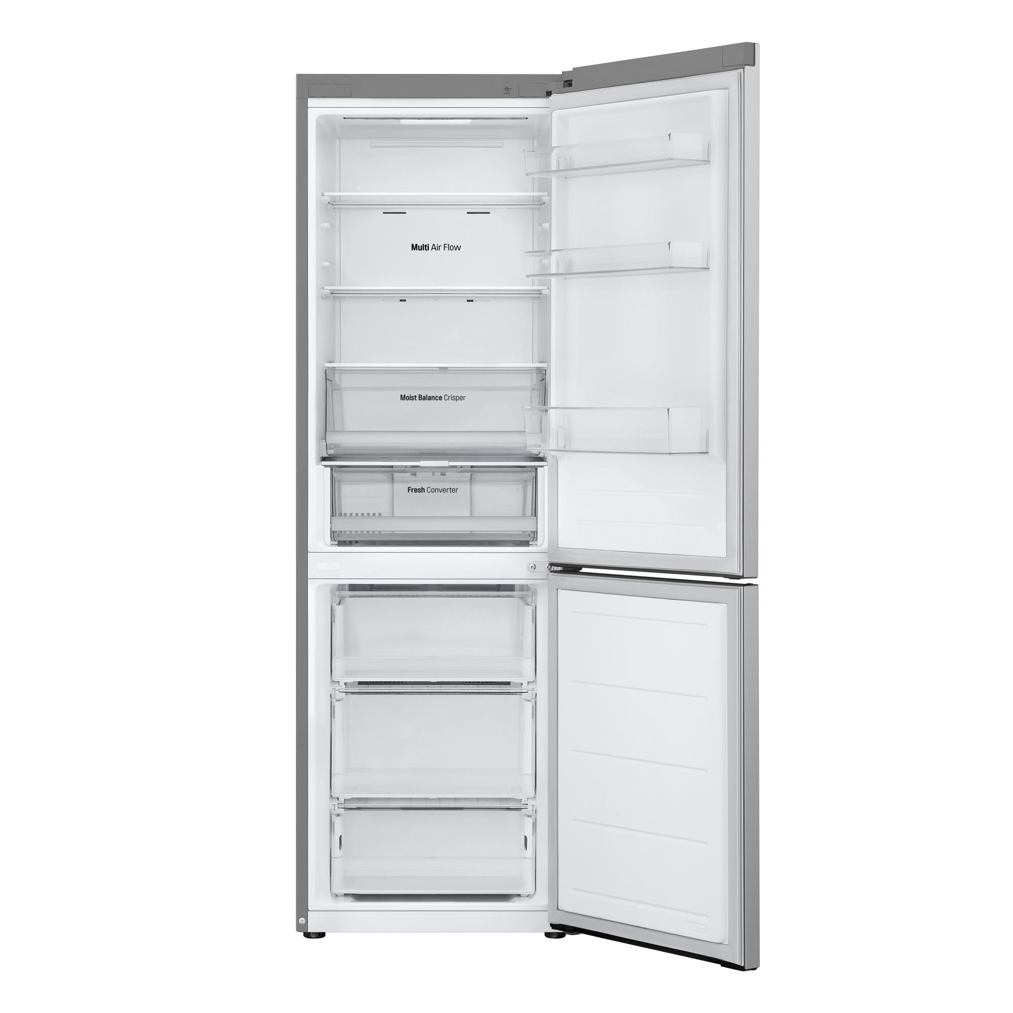 LG GBV3110EPY Frigorifero combinato, Classe E, 344L, Porte piatte, Door Cooling, Fresh Converter, Prime Silver. Capacità netta totale: 344 L. Cerniera porta: Destra, Tipo di display: LED. Classe climatica: T, Emissione acustica: 35 dB. Capacità netta frigorifero: 234 L, No Frost (frigorifero), Sistema Multi-Airflow (frigorifero), Luce interna. Capacità netta congelatore: 110 L, Capacità di congelamento: 8 kg/24h, No Frost (congelatore). Compartimento zona fresca. Classe efficienza energetica: E, Consumo energetico annuo: 267 kWh