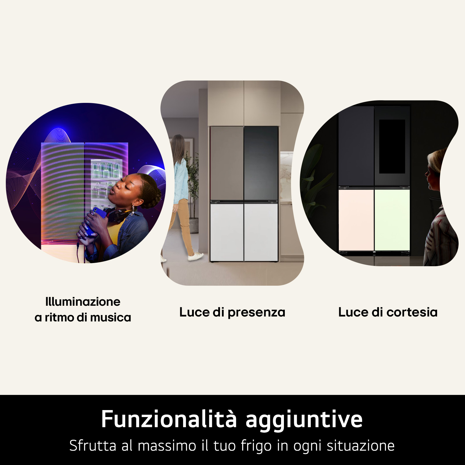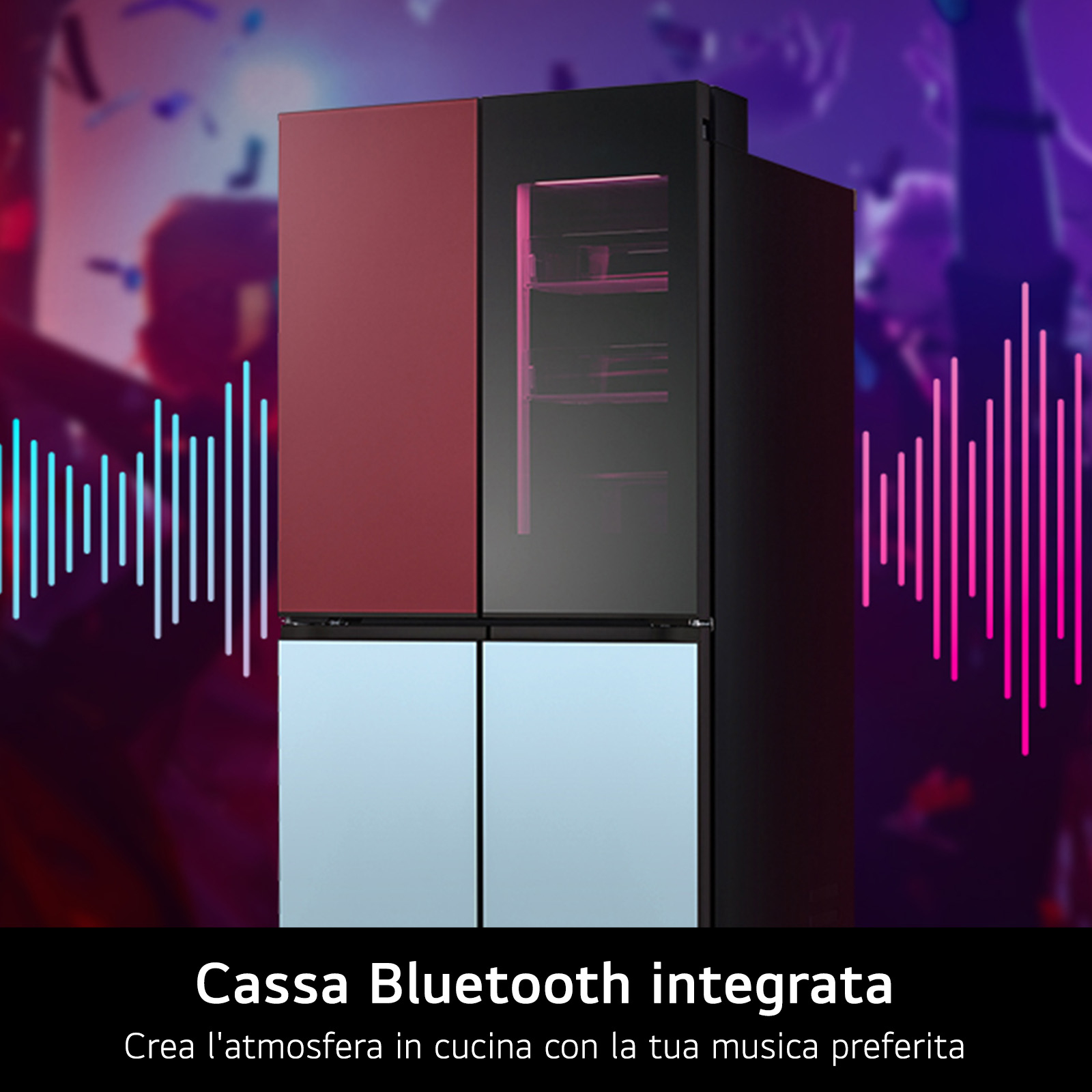 Grazie alla cassa Bluetooth integrata nel frigo, puoi riprodurre i tuoi brani preferiti e creare l’atmosfera giusta anche in cucina. Scegli tra i temi già presenti nella Collezione musica o riproduci le tue playlist. Stai organizzando una festa o una cena con amici? Con il MoodUP puoi anche sincronizzare l’illuminazione delle porte per farla andare a tempo di musica e vivere ogni esperienza come desideri.
