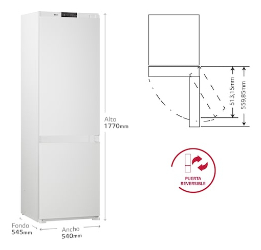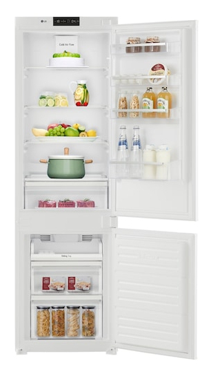 LG GNM12VWHN. Capacità netta totale: 242 L. Cerniera porta: Destra, Tipo di display: LED. Classe climatica: SN-N, Emissione acustica: 43 dB. Capacità netta frigorifero: 179 L, Numero di ripiani frigorifero: 4, Numero di cassetti per verdura: 1. Capacità netta congelatore: 63 L, Capacità di congelamento: 6,5 kg/24h, No Frost (congelatore). Compartimento zona fresca. Classe efficienza energetica: E, Consumo energetico annuo: 218 kWh. Colore del prodotto: Bianco
