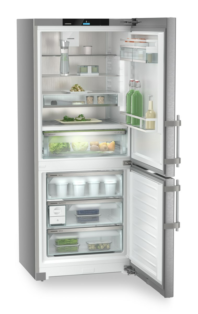 Liebherr CBNsdc 765i Prime. Capacità netta totale: 423 L. Cerniera porta: Destra, Tipo di display: TFT. Classe climatica: SN-T, Emissione acustica: 34 dB. Capacità netta frigorifero: 285 L, Luce interna, Numero di ripiani frigorifero: 5. Capacità netta congelatore: 138 L, Capacità di congelamento: 10 kg/24h, No Frost (congelatore). Compartimento zona fresca. Classe efficienza energetica: C, Consumo energetico annuo: 189 kWh. Colore del prodotto: Argento