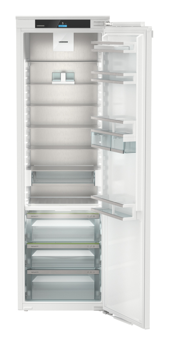 Liebherr IRBbi 5150 Prime BioFresh. Capacità netta frigorifero: 296 L, Classe climatica: SN-T, Emissione acustica: 29 dB. Numero di ripiani frigorifero: 8, Numero di cassetti per verdura: 3. Tipo di lampada: LED. Cerniera porta: Destra. Consumo energetico annuo: 80 kWh, Classe efficienza energetica: B. Colore del prodotto: Bianco