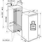 Liebherr IRBd 5121 Plus BioFresh. Posizionamento dell’apparecchio: Da incasso, Cerniera porta: Destra, Angolo di apertura della porta: 115°. Capacità netta totale: 275 L, Classe climatica: SN-T, Classe emissione rumore: B. Capacità netta frigorifero: 248 L, Tipo di lampada: LED, Variabile di temperatura frigo: 3 – 9 °C. Posizione del congelatore: Posto in alto, Capacità netta congelatore: 27 L, Capacità di congelamento: 2 kg/24h. Capacità lorda del compartimento zona fresca: 98,2 L