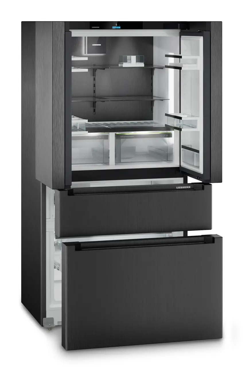 Liebherr MBbsdi 9556 Prime. Posizionamento dell’apparecchio: Libera installazione, Design del prodotto: Porta francese, Colore del prodotto: Nero. Capacità netta totale: 586 L, Classe climatica: SN-ST, Classe emissione rumore: C. Capacità netta frigorifero: 356 L, Variabile di temperatura frigo: 3 – 9 °C, Tipo di lampada: LED. Capacità netta congelatore: 231 L, Posizione del congelatore: Posto in basso, Capacità di congelamento: 10,4 kg/24h. Intervallo di temperatura del cassetto Fresh zone: -15 – 24 °C
