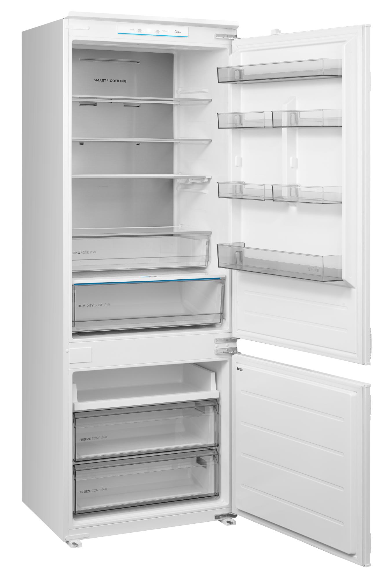 Midea MDRE554FGD01. Capacità netta totale: 403 L. Cerniera porta: Destra. Classe climatica: SN-T, Emissione acustica: 29 dB. Capacità netta frigorifero: 298 L, No Frost (frigorifero), Sistema Multi-Airflow (frigorifero), Luce interna, Numero di ripiani frigorifero: 4. Capacità netta congelatore: 105 L, Capacità di congelamento: 6 kg/24h, No Frost (congelatore). Compartimento zona fresca. Classe efficienza energetica: D, Consumo energetico annuo: 211 kWh