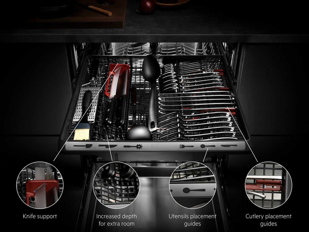 Anche nelle lavastoviglie più potenti i bicchieri devono essere trattati con delicatezza. Per fortuna, il cestello superiore di questa lavastoviglie presenta i supporti SoftGrips e SoftSpikes che mantengono in posizione i bicchieri e ti assicurano che non si rompano o graffino.