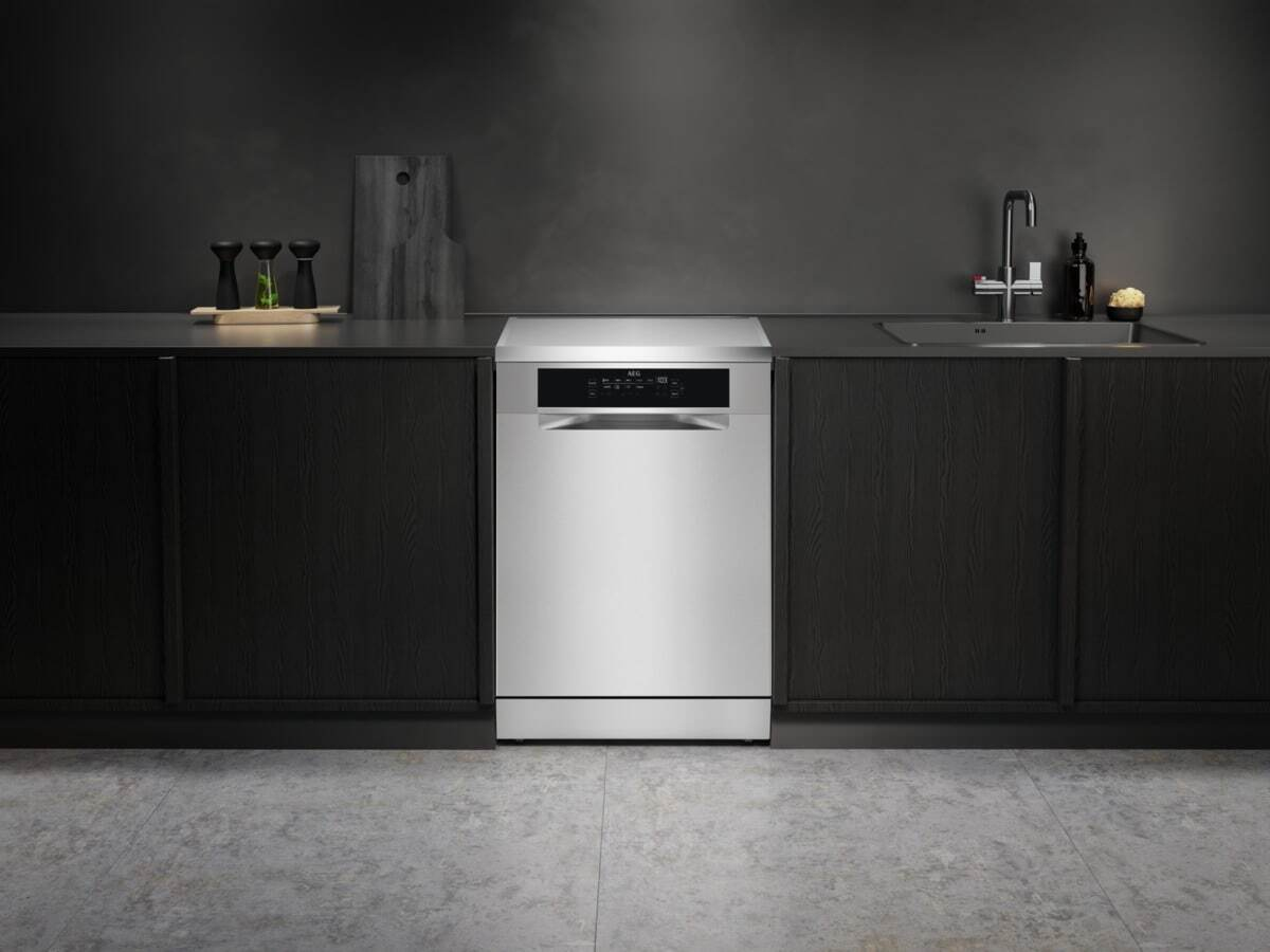 AEG LAVASTOVIGLIE LIBERA INSTALLAZIONE 60 CM – INOX 14 COPERTI CLASSE C 44 dBA FFB74707PM MADE IN ITALY. Posizionamento dell’apparecchio: Libera installazione, Dimensione: Dimensione massima (60 cm), Colore della porta: Acciaio inox. Numero di coperti: 14 coperti, Classe emissione rumore: B, Emissione acustica: 44 dB. Regolazione piedini: 3 cm. Classe efficienza energetica: C, Consumo di acqua per ciclo: 11 L, Consumo energetico per 100 cicli: 75 kWh. Larghezza: 598 mm, Profondità: 603 mm, Altezza: 850 mm