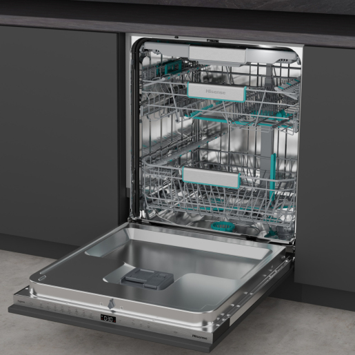 Hisense HV673A65. Posizionamento dell’apparecchio: A scomparsa totale, Dimensione: Dimensione massima (60 cm), Colore del testo del pannello di controllo: Bianco. Numero di coperti: 16 coperti, Classe emissione rumore: A, Emissione acustica: 38 dB. Regolazione piedini: 7,4 cm. Classe efficienza energetica: A, Consumo di acqua per ciclo: 9,5 L, Consumo energetico per 100 cicli: 49 kWh. Larghezza: 598 mm, Profondità: 555 mm, Altezza: 816 mm
