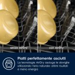 La tecnologia della lavastoviglie AirDry fa terminare ogni ciclo con una ventata di aria fresca, offrendo risultati tre volte migliori dei sistemi a porta chiusa. L’anta si apre automaticamente durante la fase di asciugatura e l’aria asciuga completamente piatti e posate.