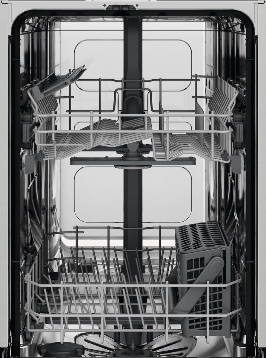 Electrolux KEAF2100L Lavastoviglie Integrata totale Serie 300 AirDry 45 cm. Posizionamento dell’apparecchio: A scomparsa totale, Dimensione: Compatta (45 cm), Tipo di display: LED. Numero di coperti: 9 coperti, Classe emissione rumore: C, Emissione acustica: 49 dB. Classe efficienza energetica: F, Consumo di acqua per ciclo: 9,9 L, Consumo energetico per 100 cicli: 78 kWh. Larghezza: 446 mm, Profondità: 550 mm, Altezza: 818 mm. Volume del pacco: 292000 cm³, Larghezza imballo: 490 mm, Profondità imballo: 685 mm