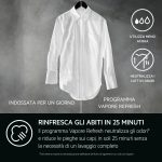 Il vapore rinfresca rapidamente i tessuti ed elimina gli odori dai capi già indossati, consumando solo 2L d’acqua per ciclo. Aggiungendo invece l’opzione Vapore Finale al termine di un ciclo di lavaggio, puoi ridurre le pieghe e il tempo di stiratura.