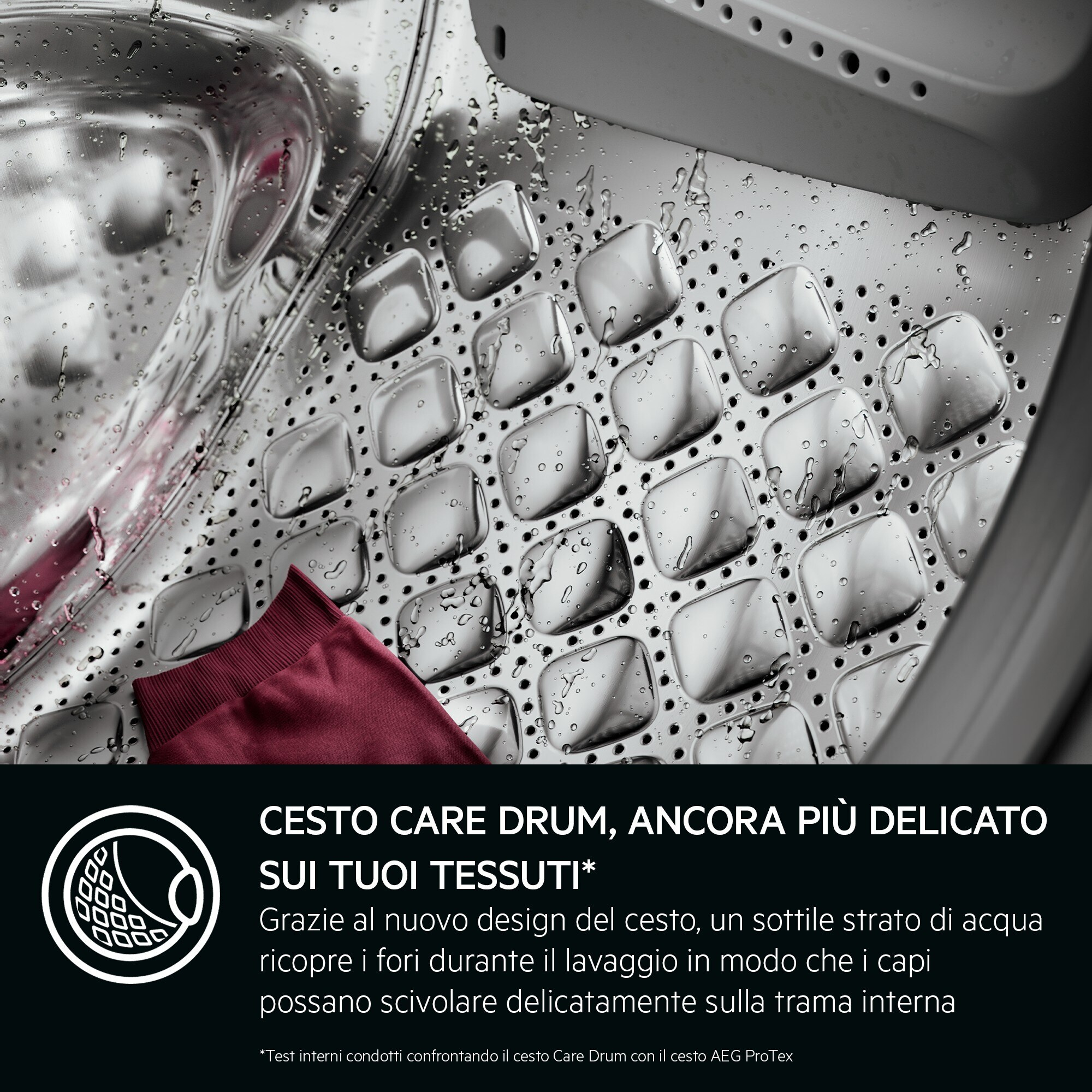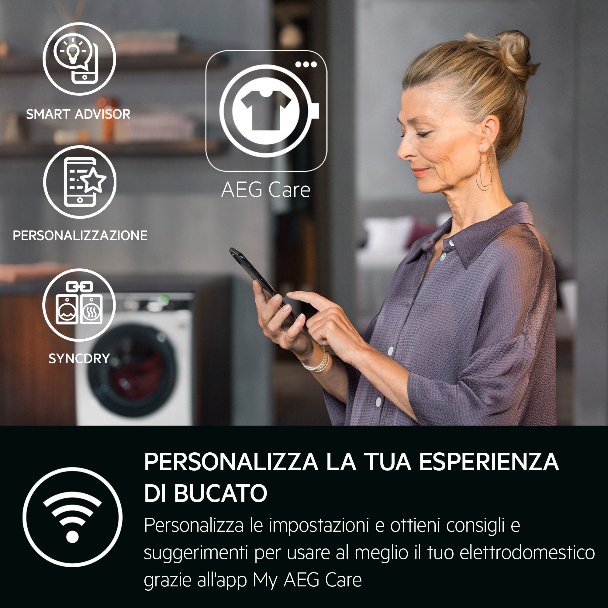 AEG LAVATRICE CARICA FRONTALE 10 KG CLASSE A-40% 1400 GIRI LR7FH104VY MADE IN ITALY. Tipo di carica: Caricamento frontale. Capacità cestello: 10 kg, Classe di efficienza della centrifuga: B, Silenziosità (centrifuga): 72 dB, Velocità di centrifuga massima: 1351 Giri/min. Colore del prodotto: Bianco. Larghezza: 597 mm, Profondità: 636 mm, Altezza: 847 mm. Classe efficienza energetica: A