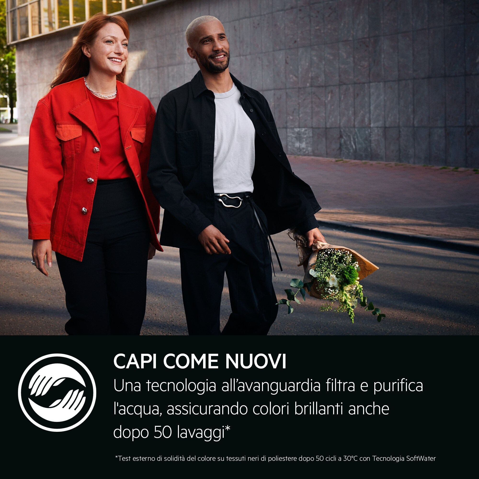 La Lavatrice Serie 9000 SoftWater utilizza la nostra esclusiva e innovativa tecnologia per filtrare e purificare l’acqua, così i capi mantengono intatte forma e qualità[2] con colori vivaci nel tempo[1].