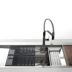 Foster Milano ha un ingegnoso design, con un sistema di tre invasi dove gli accessori alloggiano su livelli distinti. Sul primo, scorrono le innovative griglie Black, una grande e pratica superficie per risciacquare, scolare, lavorare. Il secondo invaso è studiato per sostenere e far scorrere unastema di tre invasi dove gli accessori alloggiano su livelli distinti. Sul primo, scorrono le innovative griglie Black, una grande e pratica superficie per risciacquare, scolare, lavorare. Il secondo invaso è studiato per sostenere e far scorrere una combinazione completa di accessori che rendono sicura e pratica ogni operazione: risciacquare, scolare, affettare, grattugiare… sempre all’interno del lavello. Il terzo invaso è sul fondo della vasca. Su questo trovano alloggio le griglie Black per risciacquare i cibi senza che vengano a contatto con il fondo eventualmente sporco, o per appoggiare pentole senza graffiare. Le nuove griglie Black caratterizzano fortemente l’estetica e la funzionalità. Igieniche, dotate di grande leggerezza, resistenza e facilità nelle operazioni di pulizia, sono inoltre ecologiche al 100%, una scelta rispettosa per la natura e l’ambiente che ci circonda.