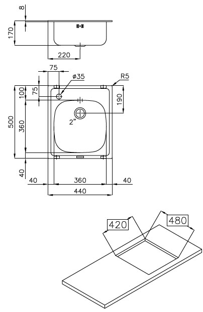 440x500mm, inox