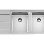 1160 x 500 mm, 2 vasche, Piletta 3,5″, Acciaio inox AISI 304
