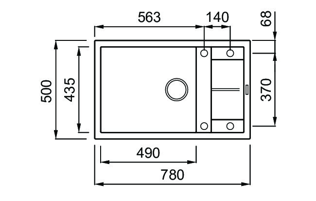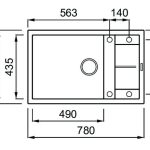 Lavello 1 vasca con gocciolatoio, 780 x 500 mm, Keratek Plus, K86 Nero