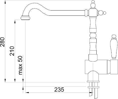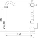 Elleci Rio. Colore del prodotto: Ottone, Materiale del rubinetto: Acciaio inox, Controllo del flusso d’acqua: Leva sanitaria. Altezza (max): 28 cm, Altezza sopra la superficie di fissaggio (max): 28 cm, Distanza tra foro di fissaggio e diffusore acqua: 23,5 cm