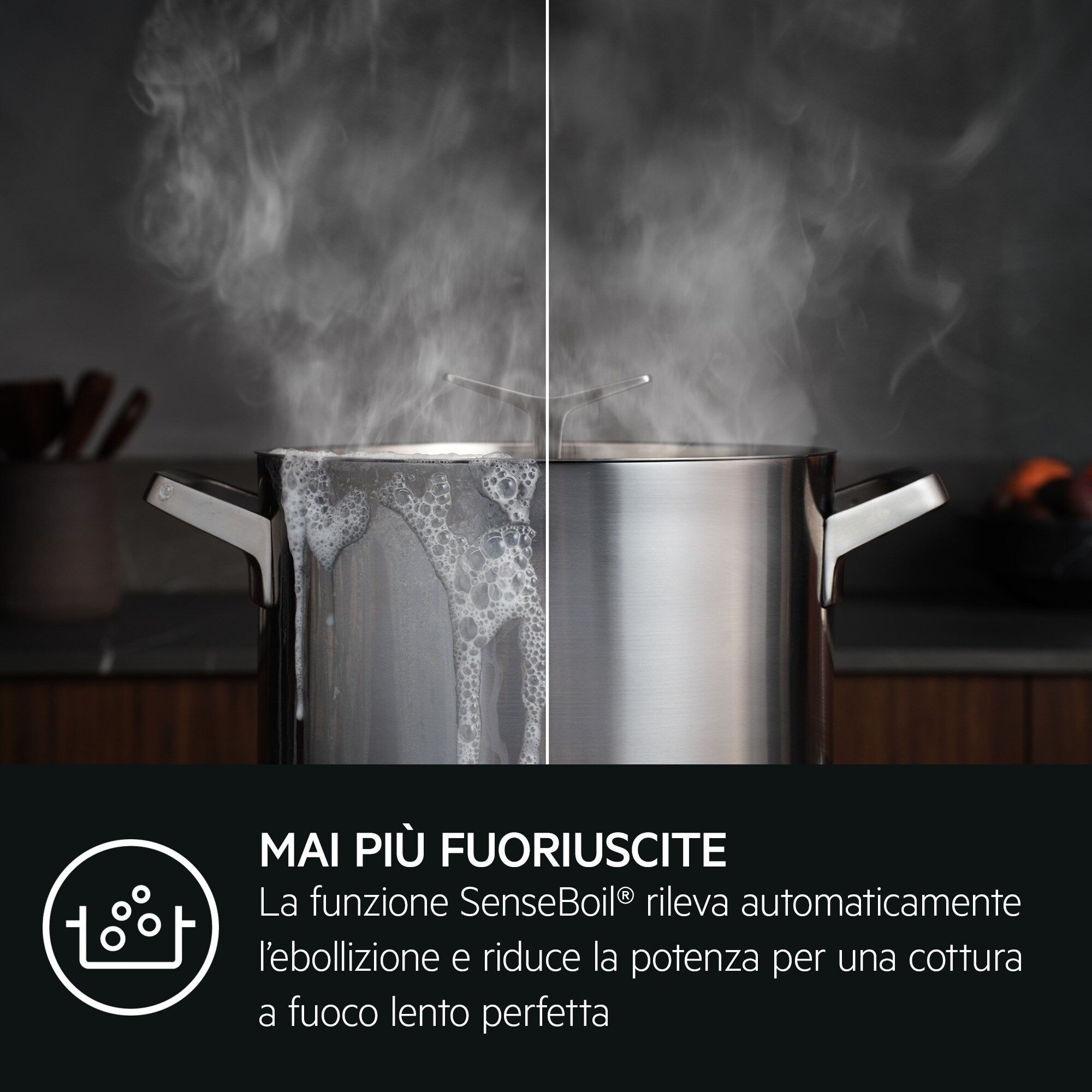Il nostro piano cottura a induzione della gamma Sense utilizza solo l’energia necessaria per cucinare.