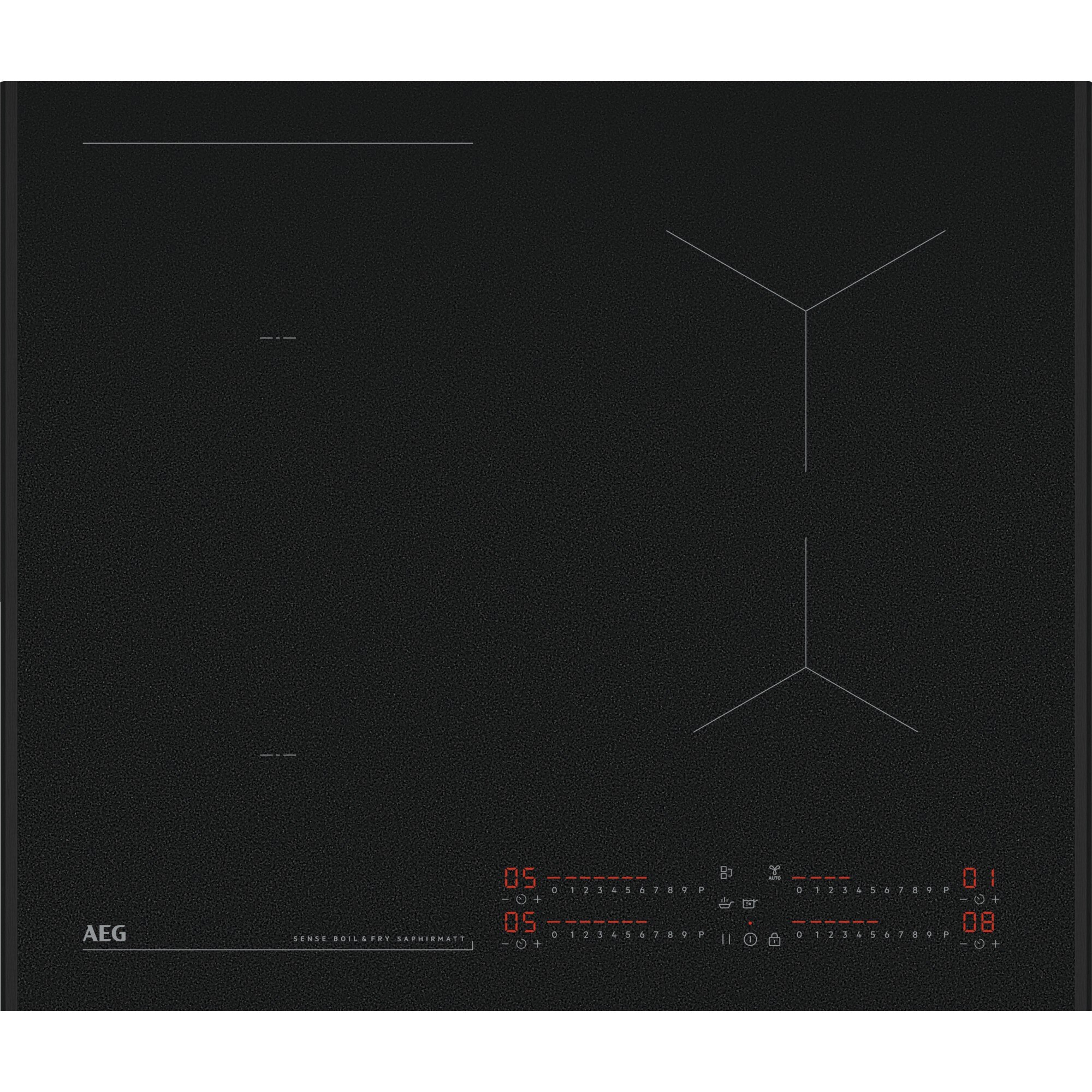 AEG NII64B30AZ Piano cottura ad induzione SaphirMatt® Serie 8000 Sense Boil+Fry 60 cm. Colore del prodotto: Nero, Posizionamento dell’apparecchio: Da incasso, Dimensione della larghezza del piano cottura: 75 cm. Certificazione: CE|DEMKO|UL|WABE. Tipo di controllo: Touch, Posizione di controllo: Parte anteriore destra, Tipo di timer: Digitale. Potenza aggregata (elettrica): 7350 W, Tensione di ingresso AC: 220-240/400 2N, Frequenza di ingresso AC: 50 Hz. Larghezza: 610 mm, Profondità: 520 mm, Peso: 10,9 kg