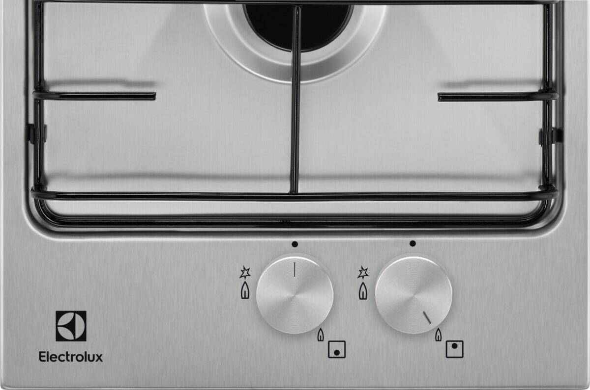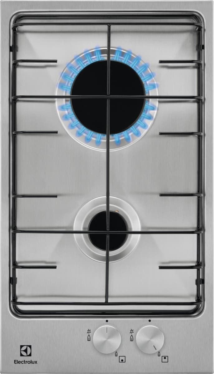 Electrolux EGG3222N Piano cottura a gas Serie 300 Domino 29cm. Colore del prodotto: Acciaio inox, Posizionamento dell’apparecchio: Da incasso, Dimensione della larghezza del piano cottura: 29 cm. Certificazione: CE. Tipo di controllo: Manopola, Posizione di controllo: Frontale superiore, Tipo di accensione elettronica: Accensione con manopola. Tensione di ingresso AC: 220-240 V, Frequenza di ingresso AC: 50/60 Hz, Tipo di gas: NG + GPL (Propano/Butano). Larghezza: 290 mm, Profondità: 510 mm, Peso: 4,4 kg