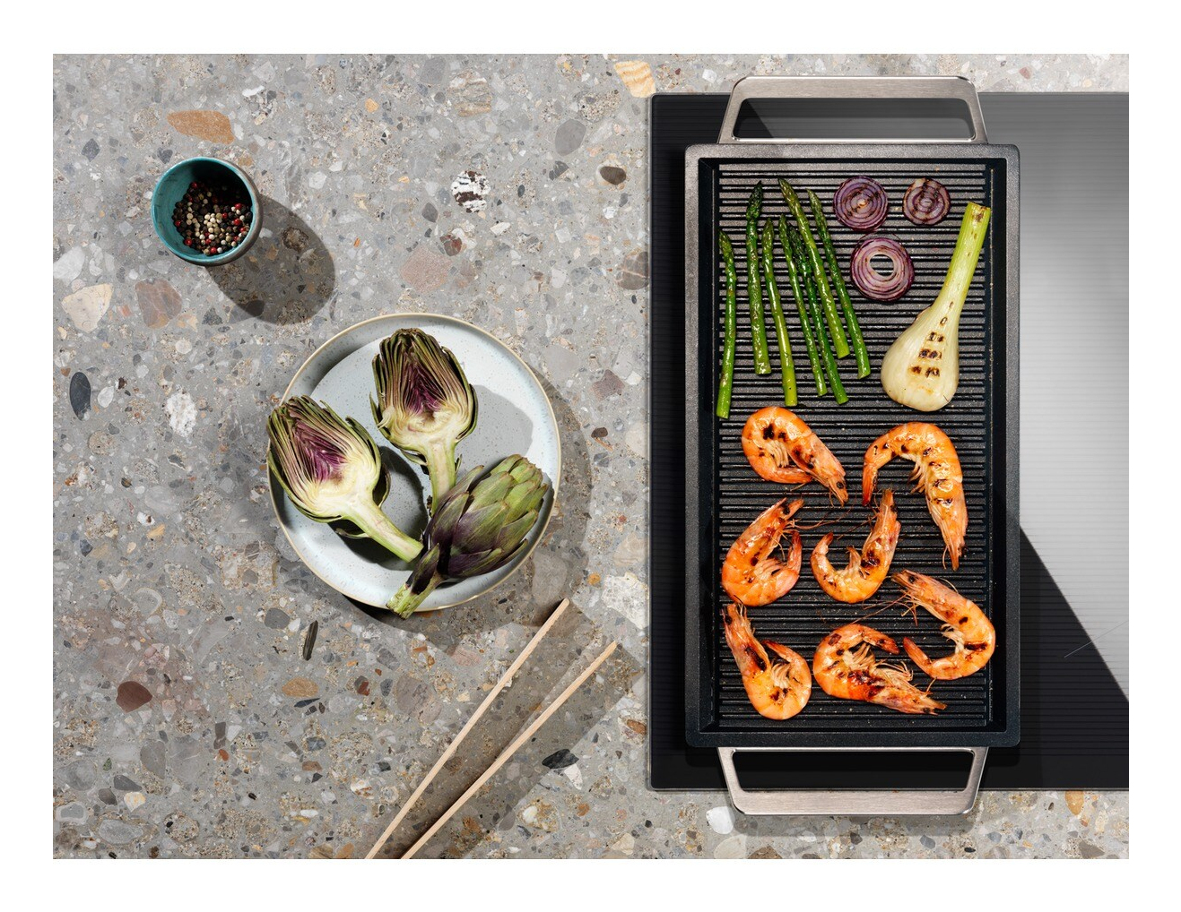 Il piano cottura a induzione Bridge consente di combinare due zone cottura separate per creare un’unica, ampia superficie. Grazie all’allineamento automatico delle impostazioni di temperatura e ora, è la soluzione ideale per sfruttare al meglio utensili come piastre e teglie per l’arrosto.