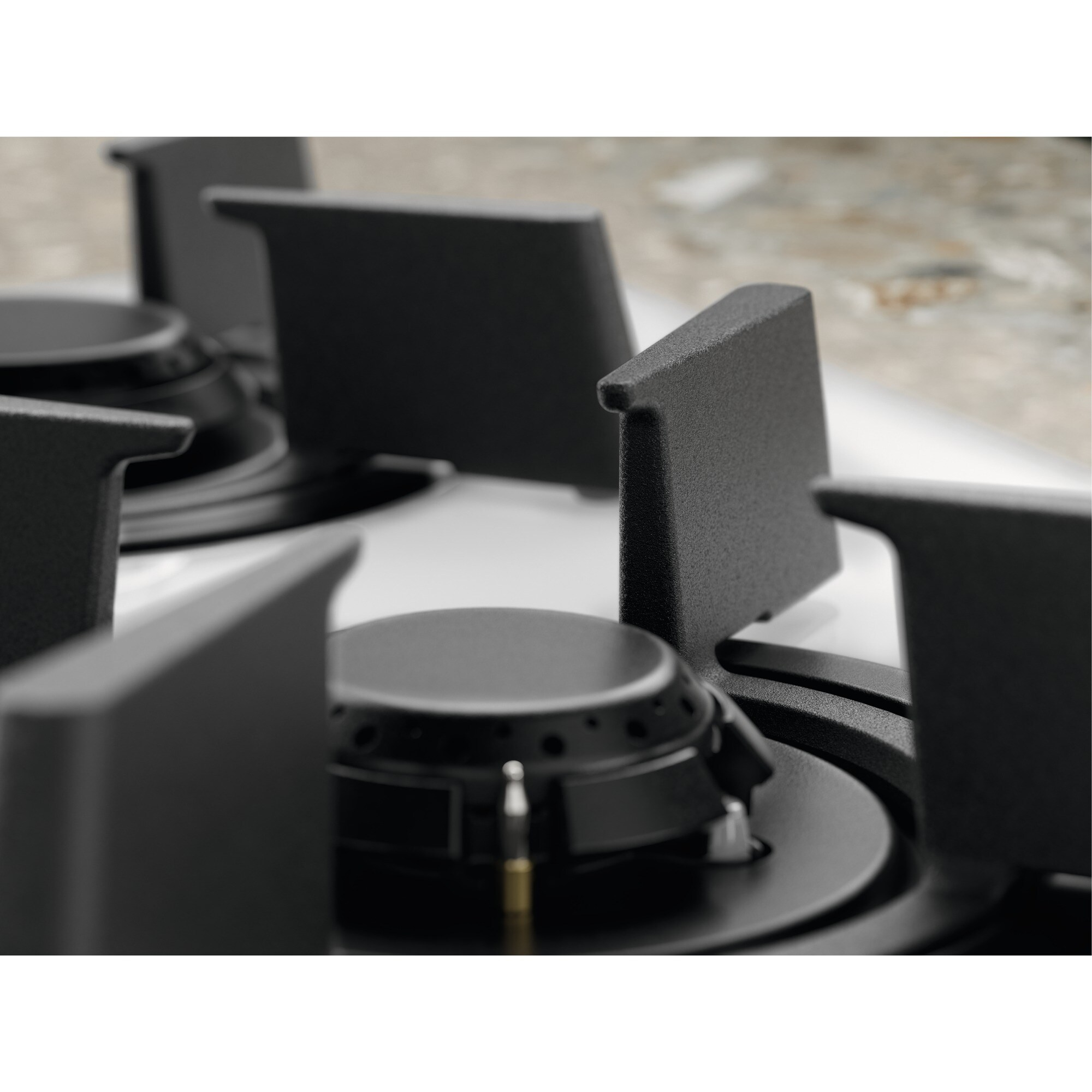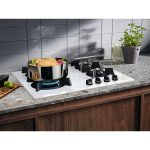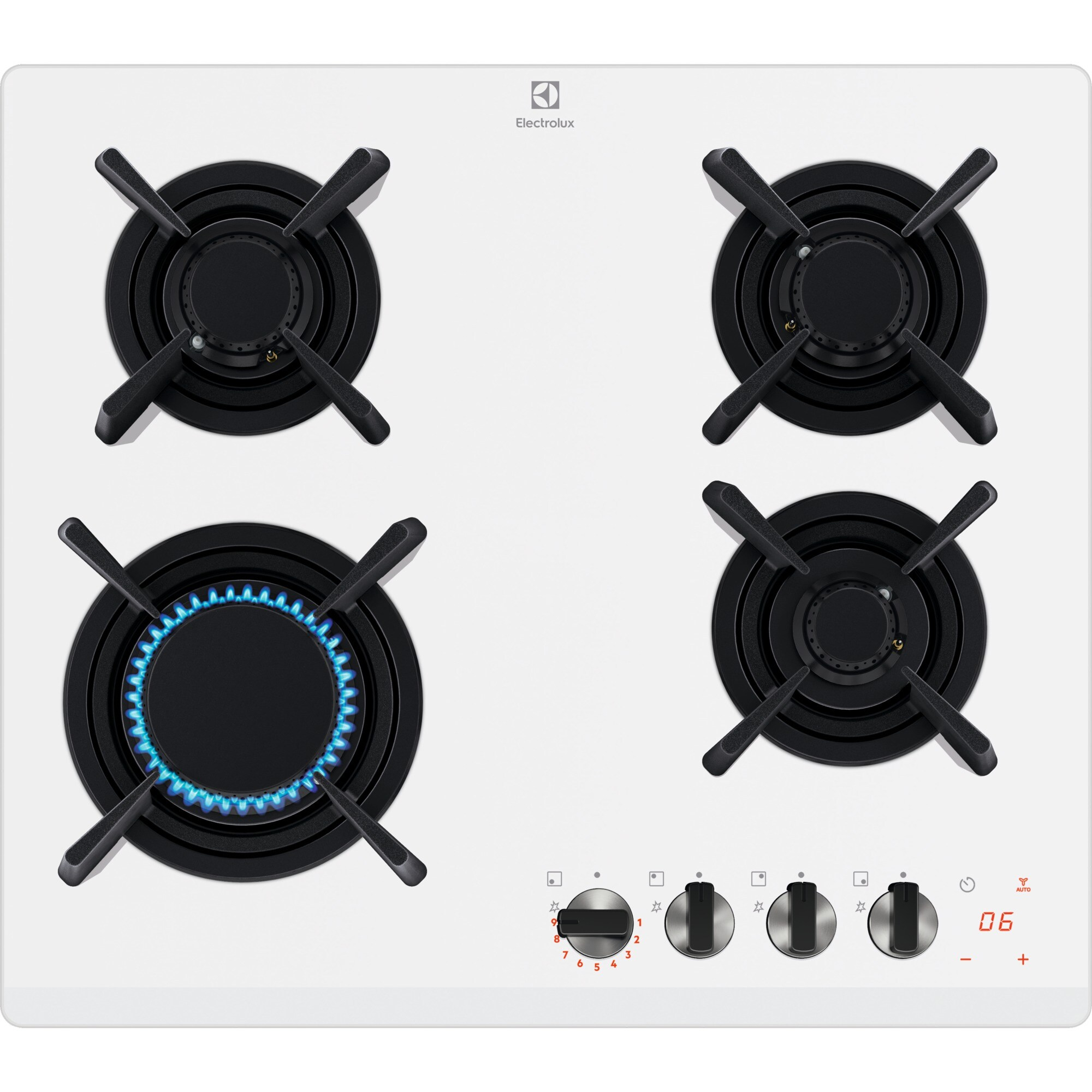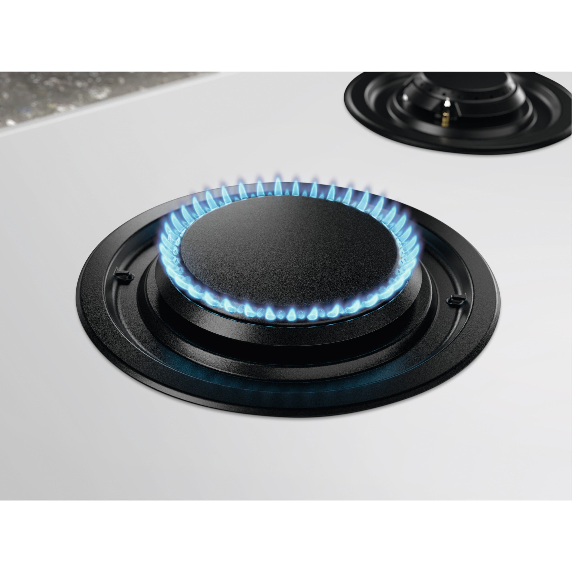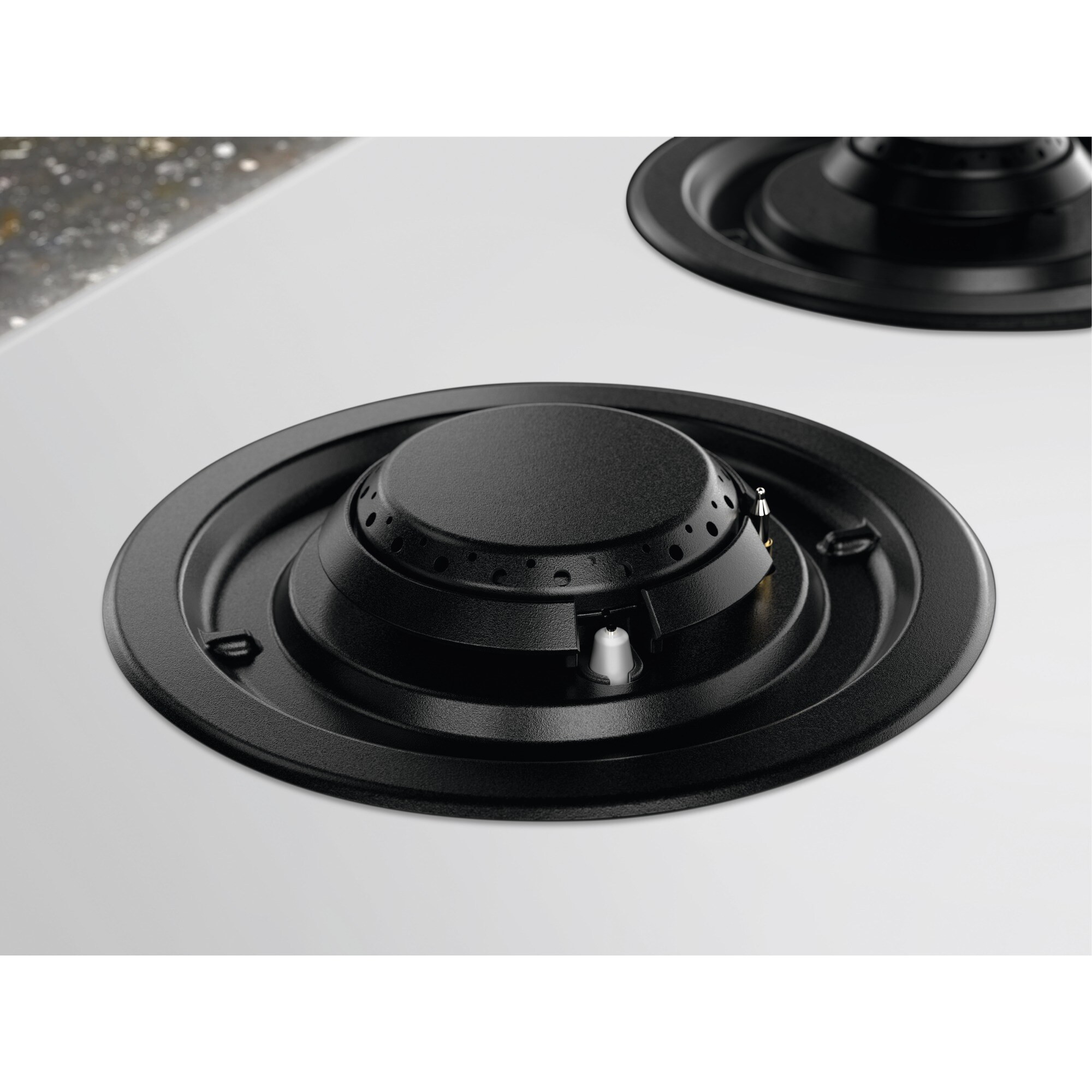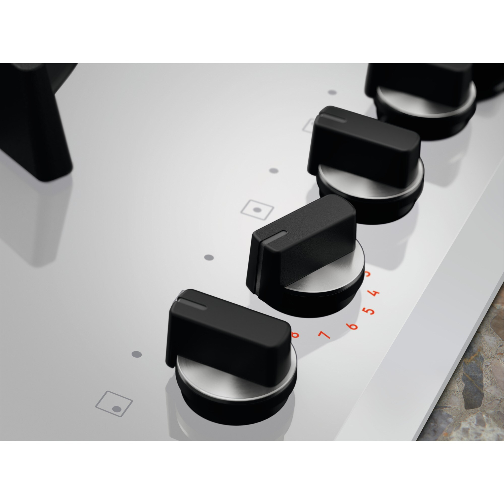 Electrolux KGG643753W Piano cottura Serie 800 Flamelight 60cm. Colore del prodotto: Bianco, Posizionamento dell’apparecchio: Da incasso, Dimensione della larghezza del piano cottura: 75 cm. Certificazione: CE. Tipo di controllo: Manopola, Posizione di controllo: Parte anteriore destra, Tipo di display: LED. Potenza aggregata (gas): 8500 W, Tensione di ingresso AC: 220-240 V, Frequenza di ingresso AC: 50/60 Hz. Larghezza: 590 mm, Profondità: 520 mm, Altezza: 8 mm