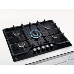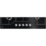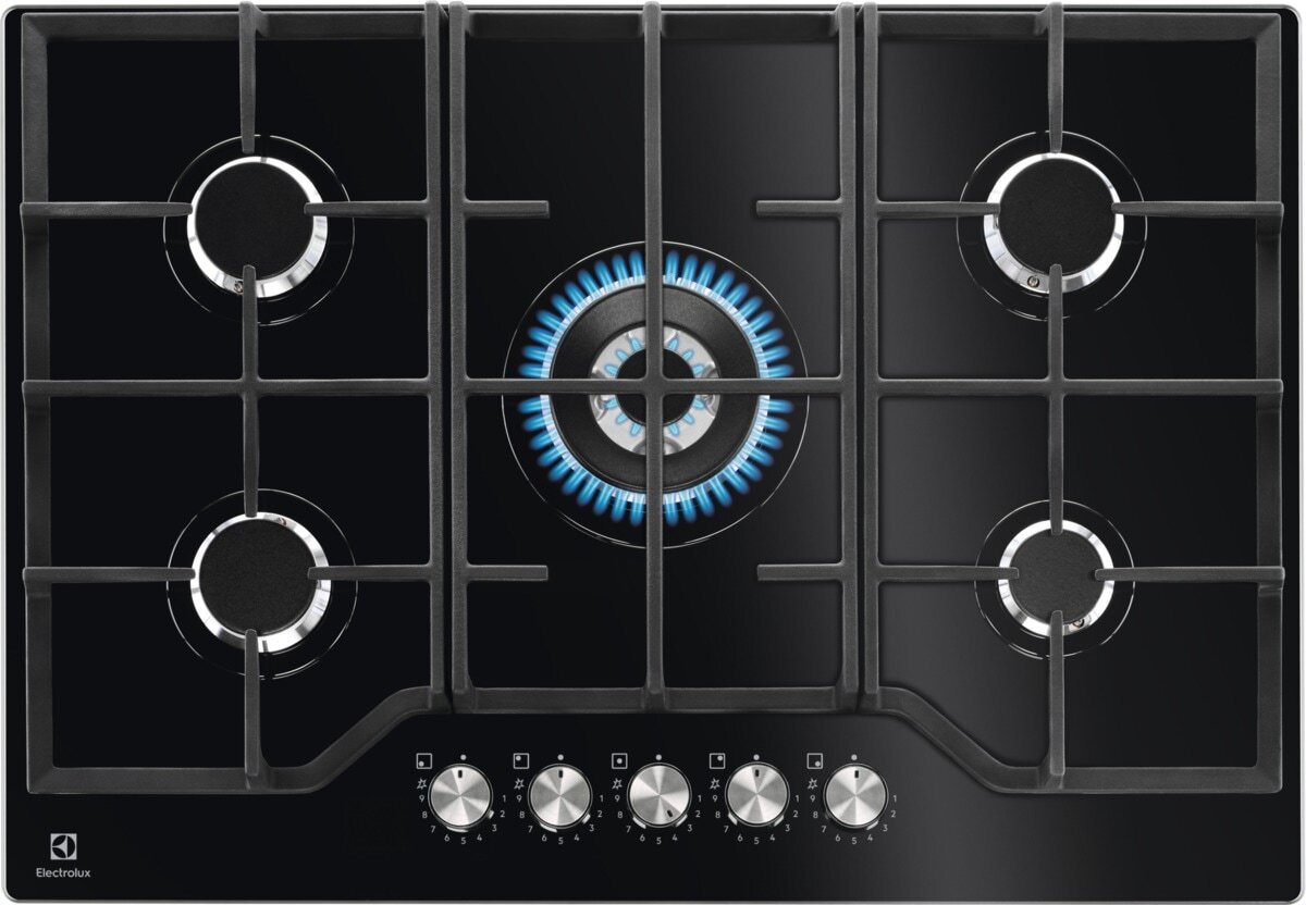 Electrolux KGG75362K Piano cottura Serie 600 Gas on Glass 75cm. Colore del prodotto: Nero, Posizionamento dell’apparecchio: Da incasso, Dimensione della larghezza del piano cottura: 75 cm. Certificazione: CE. Tipo di controllo: Manopola, Posizione di controllo: Front / Top front, Tipo di accensione elettronica: Accensione con manopola. Potenza aggregata (gas): 10900 W, Tensione di ingresso AC: 220-240 V, Frequenza di ingresso AC: 50/60 Hz. Larghezza: 740 mm, Profondità: 510 mm, Peso: 15,6 kg