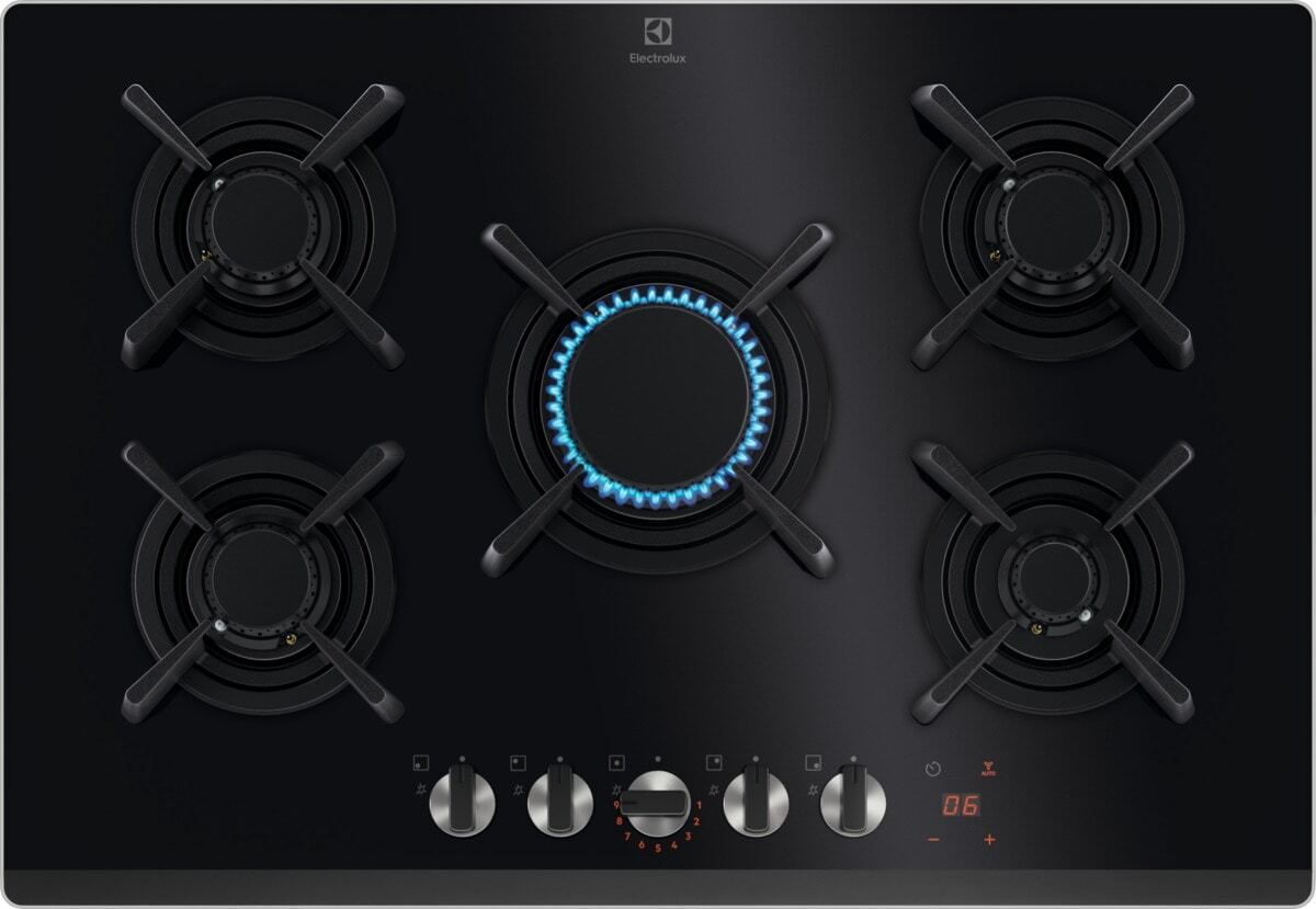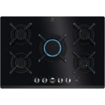 Electrolux KGG753753K Piano cottura Serie 800 Flamelight 75cm. Colore del prodotto: Nero, Posizionamento dell’apparecchio: Da incasso, Dimensione della larghezza del piano cottura: 75 cm. Certificazione: CE. Tipo di controllo: Manopola, Touch, Posizione di controllo: Frontale, Tipo di display: LED. Potenza aggregata (gas): 10350 W, Tensione di ingresso AC: 220-240 V, Frequenza di ingresso AC: 50/60 Hz. Larghezza: 740 mm, Profondità: 510 mm, Peso: 16,1 kg