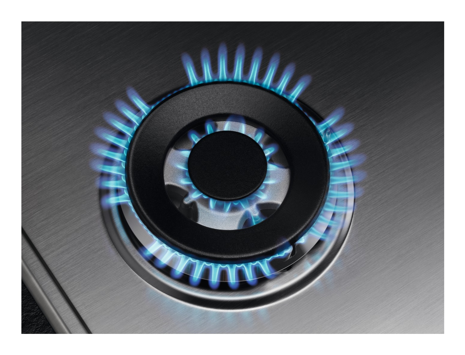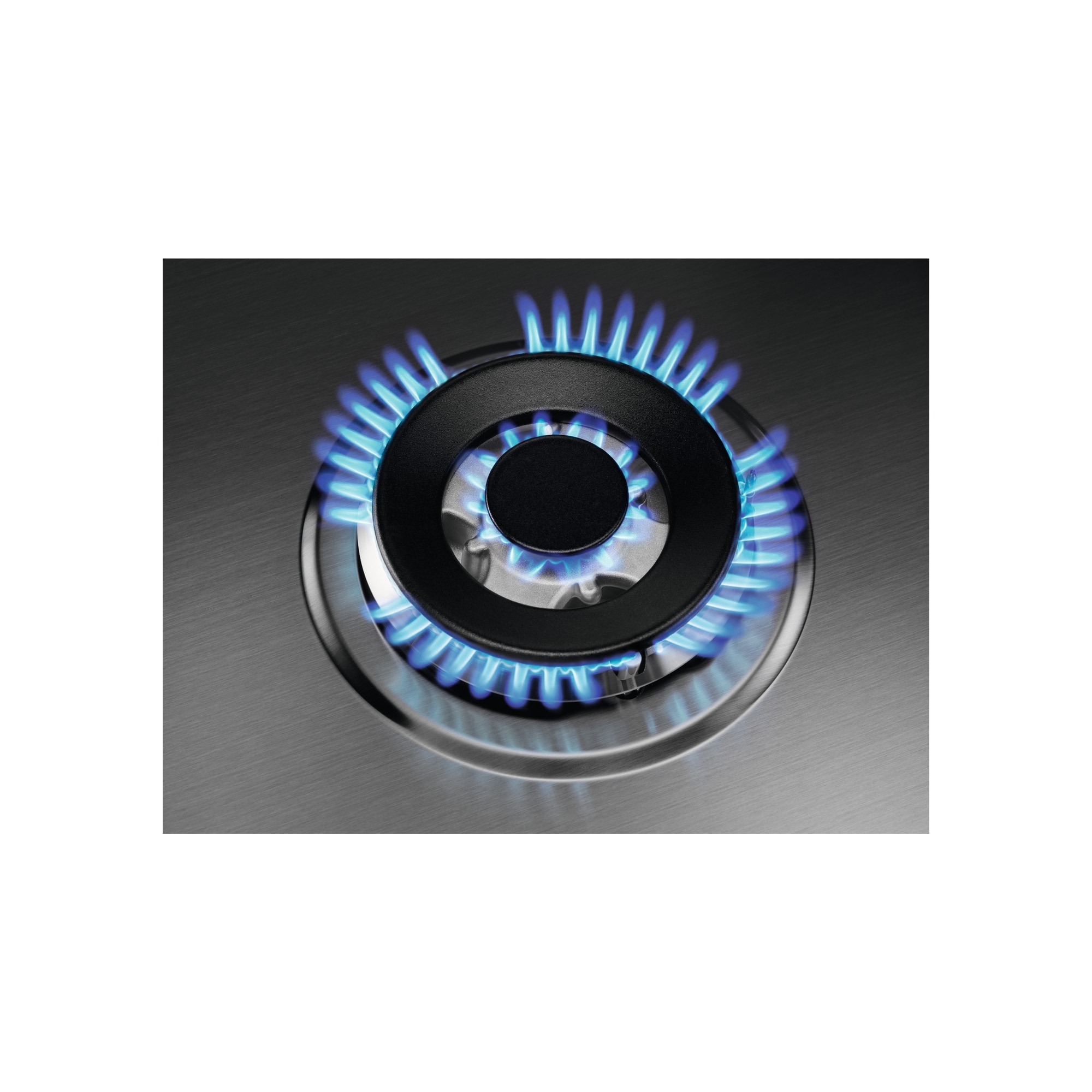Il nuovo piano cottura a gas di AEG è 20% più veloce rispetto a un piano di cottura a gas normale.Inoltre la superficie in acciaio inossidabile levigata si adatta perfettamente al design della tua cucina.