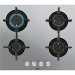AEG HKB64029UM Piano cottura a gas FlushBurner 60 cm. Colore del prodotto: Nero, Argento, Posizionamento dell’apparecchio: Da incasso, Dimensione della larghezza del piano cottura: 75 cm. Certificazione: CE. Tipo di controllo: Manopola, Posizione di controllo: Frontale, Tipo di accensione elettronica: Accensione con manopola. Tensione di ingresso AC: 220-240 V, Frequenza di ingresso AC: 50/60 Hz, Tipo di gas: Gas naturale (NG). Larghezza: 595 mm, Profondità: 520 mm, Peso: 13,6 kg