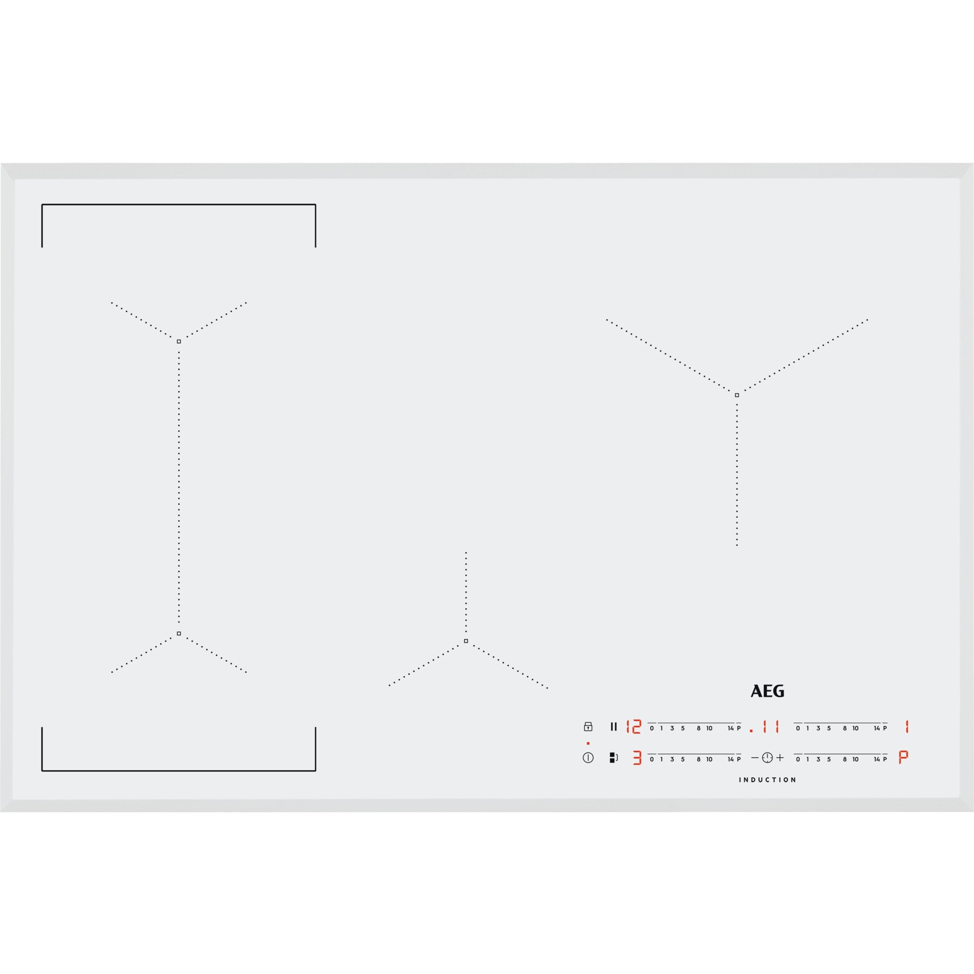 AEG IKE84443FW Piano cottura ad induzione serie 6000 Bridge 80 cm. Colore del prodotto: Bianco, Posizionamento dell’apparecchio: Da incasso, Dimensione della larghezza del piano cottura: 75 cm. Bruciatore piccolo: 1400 W, Bruciatore medio: 2300 W, Bruciatore grande: 2300 W. Tipo di controllo: Touch, Posizione di controllo: Frontale superiore, Tipo di display: LED. Potenza aggregata (elettrica): 7200 W, Tensione di ingresso AC: 220-240/400 2N, Frequenza di ingresso AC: 50/60 Hz. Larghezza: 780 mm, Profondità: 520 mm, Peso: 11,6 kg